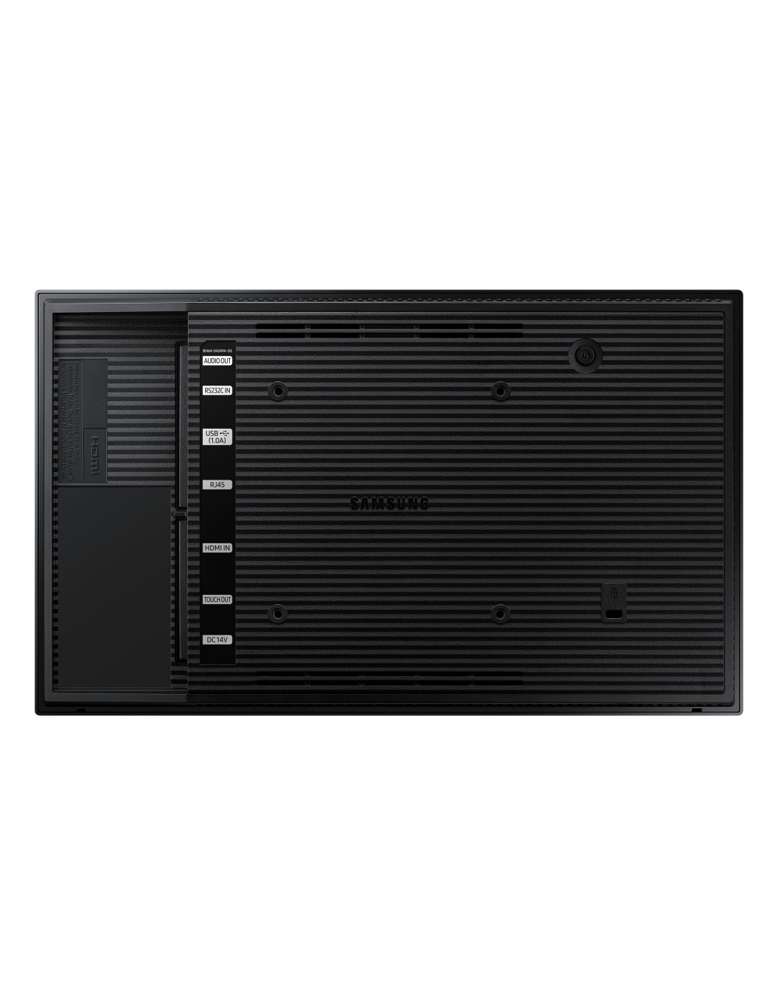 Samsung QB13R-TM. Diseño de producto: Panel plano interactivo. Diagonal de la pantalla: 33 cm (13"), Tecnología de visualización: LED, Resolución de la pantalla: 1920 x 1080 Pixeles, Brillo de pantalla: 500 cd / m², Tipo HD: Full HD, Pantalla táctil. Wifi. Horas de funcionamiento (horas/días): 16/7. Sistema operativo instalado: Tizen 4.0. Color del producto: Negro
