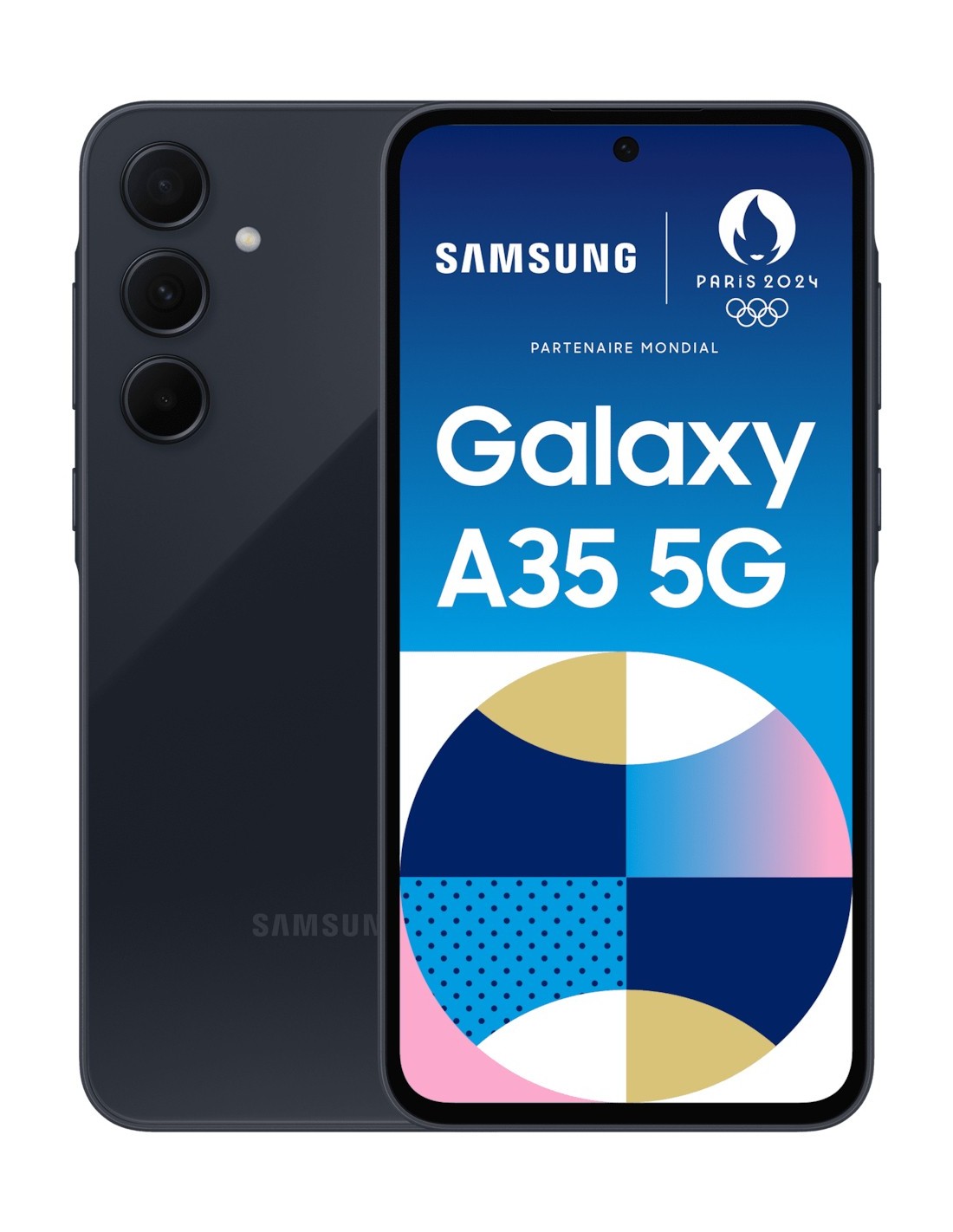 Samsung Galaxy A35 5G . Diagonal de la pantalla: 16,8 cm (6.6"), Resolución de la pantalla: 1080 x 2340 Pixeles. Frecuencia del procesador: 2 GHz, Familia de procesador: Samsung Exynos. Capacidad de RAM: 8 GB, Capacidad de almacenamiento interno: 256 GB. Resolución de la cámara trasera (numérica): 50 MP, Tipo de cámara trasera: Triple cámara. Capacidad de la tarjeta SIM: Ranura híbrida Dual SIM. Sistema operativo instalado: Android 14. Capacidad de batería: 5000 mAh. Color del producto: Marina. Peso: 209 g