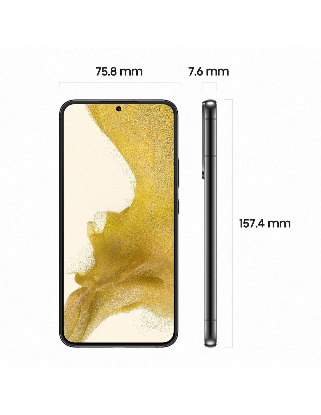 Samsung Galaxy S22+ SM-S906B. Diagonal de la pantalla: 16,8 cm (6.6"), Resolución de la pantalla: 2340 x 1080 Pixeles. Frecuencia del procesador: 2,8 GHz, Familia de procesador: Samsung Exynos, Modelo del procesador: 2200. Capacidad de RAM: 8 GB, Capacidad de almacenamiento interno: 256 GB. Resolución de la cámara trasera (numérica): 50 MP, Tipo de cámara trasera: Triple cámara. Capacidad de la tarjeta SIM: SIM doble. Sistema operativo instalado: Android 12. Capacidad de batería: 4500 mAh. Color del producto: Negro. Peso: 195 g