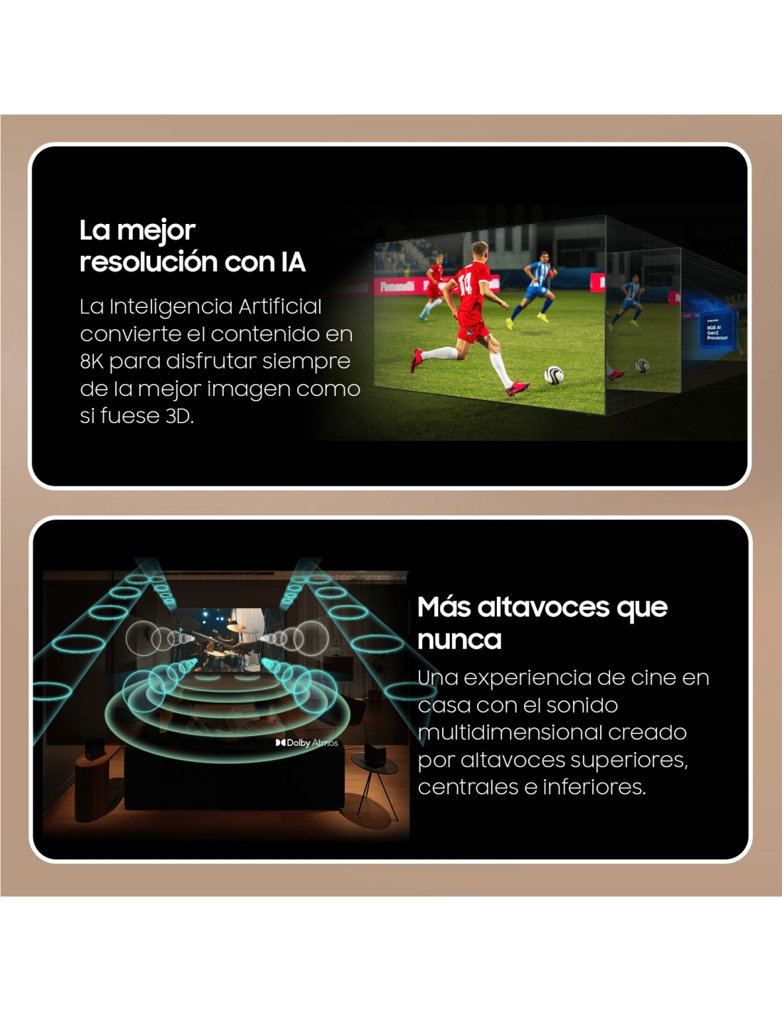 El nuevo procesador de los televisores Neo QLED 8K y sus 512 redes neuronales, mejora y realza los objetos en movimiento. Ver un partido será una experiencia nueva.