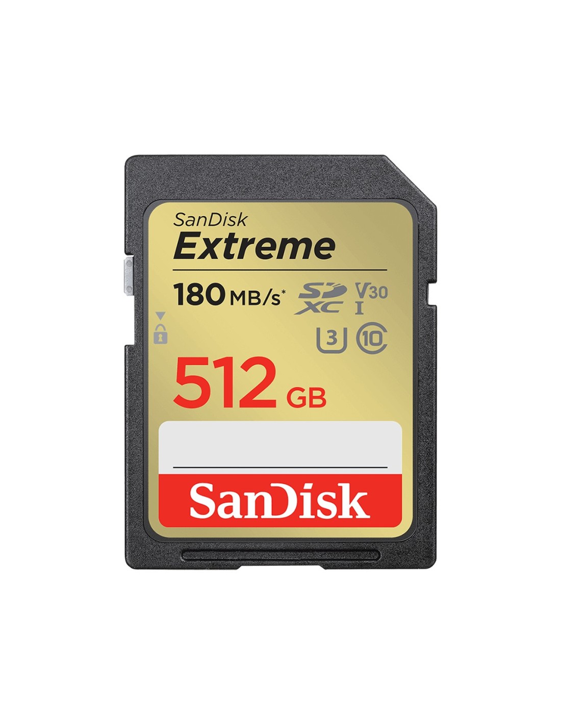 SanDisk Extreme. Capacidad: 512 GB, Tipo de tarjeta flash: SDXC, Clase de memoria flash: Clase 10, Tipo de memoria interna: UHS-I, Velocidad de lectura: 180 MB/s, Velocidad de escritura: 130 MB/s, Clase de velocidad UHS: Class 3 (U3), Clase de velocidad de vídeo: V30. Funciones de protección: Resistente a golpes, Resistente a la temperatura, Resistente al agua, A prueba de rayos X, Color del producto: Negro, Oro