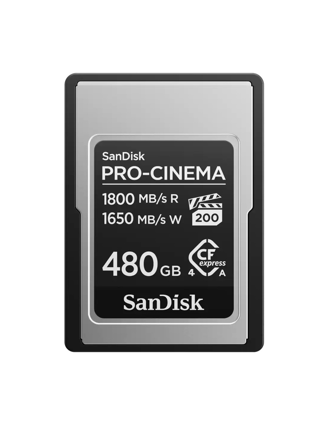 SanDisk PRO-CINEMA CFexpress Type A Card - 480GB, 480 GB, CFexpress tipo A, 1800 MB/s, 1650 MB/s, Protección contra caídas, Resistente al polvo, Resistente al agua, Negro, Metálico