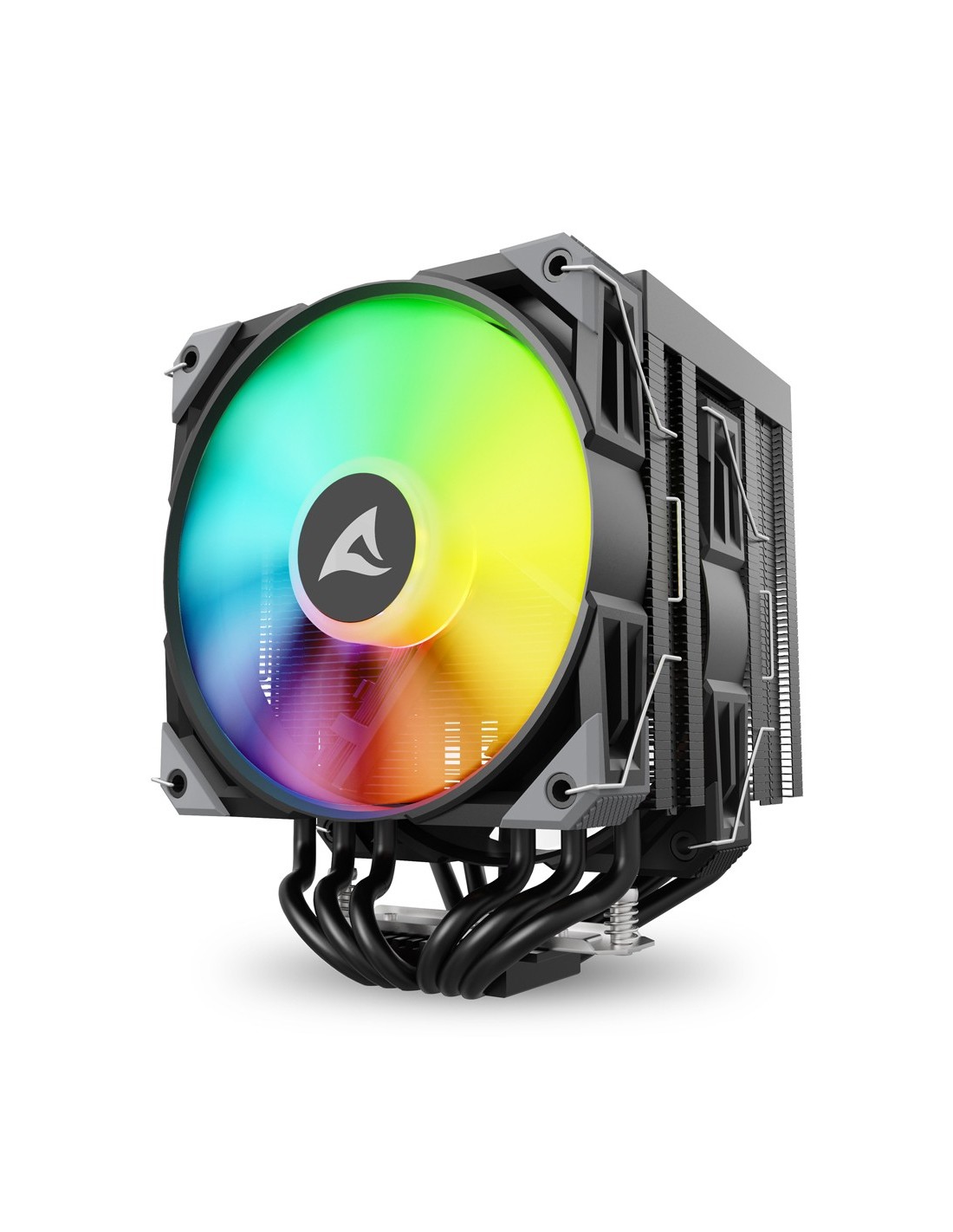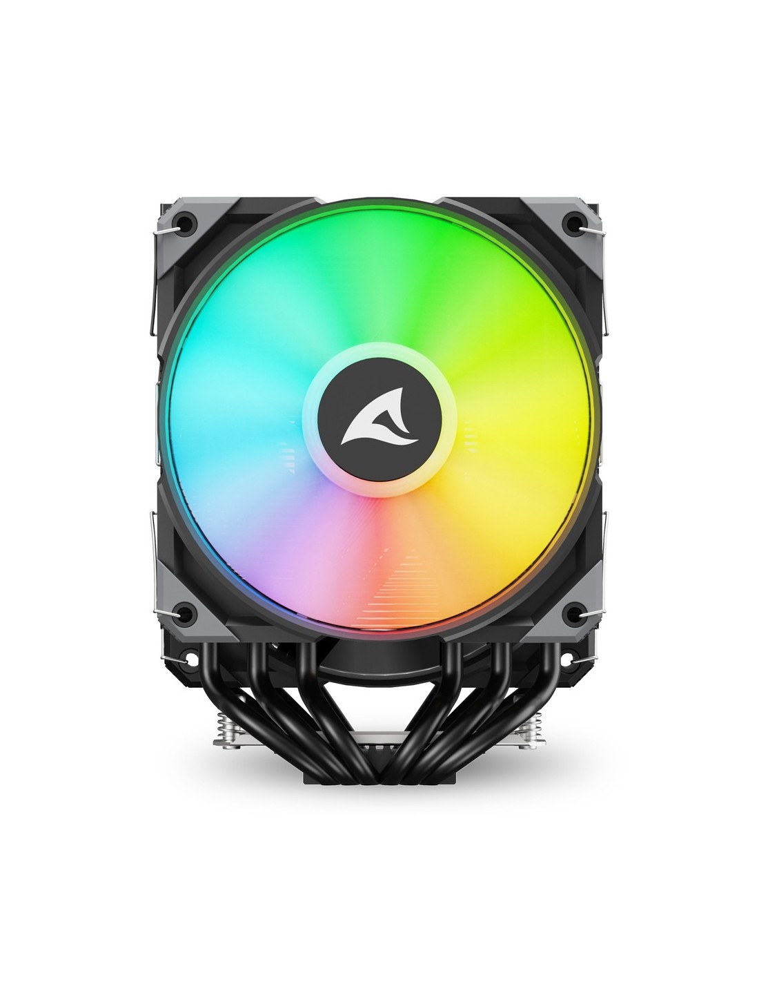 Sharkoon A60 RGB. Tipo: Refrigerador de aire, Diámetro de ventilador: 12 cm, Velocidad de rotación (mín.): 500 RPM, Velocidad de rotación (máx.): 1800 RPM, flujo de aire: 121,55 m³/h, Presión máxima de aire: 2,9 mmH2O, Tipo de soporte: Rodamiento dinámico fluido (FDB). Ancho: 125 mm, Profundidad: 120 mm, Altura: 159 mm. Color del producto: Negro