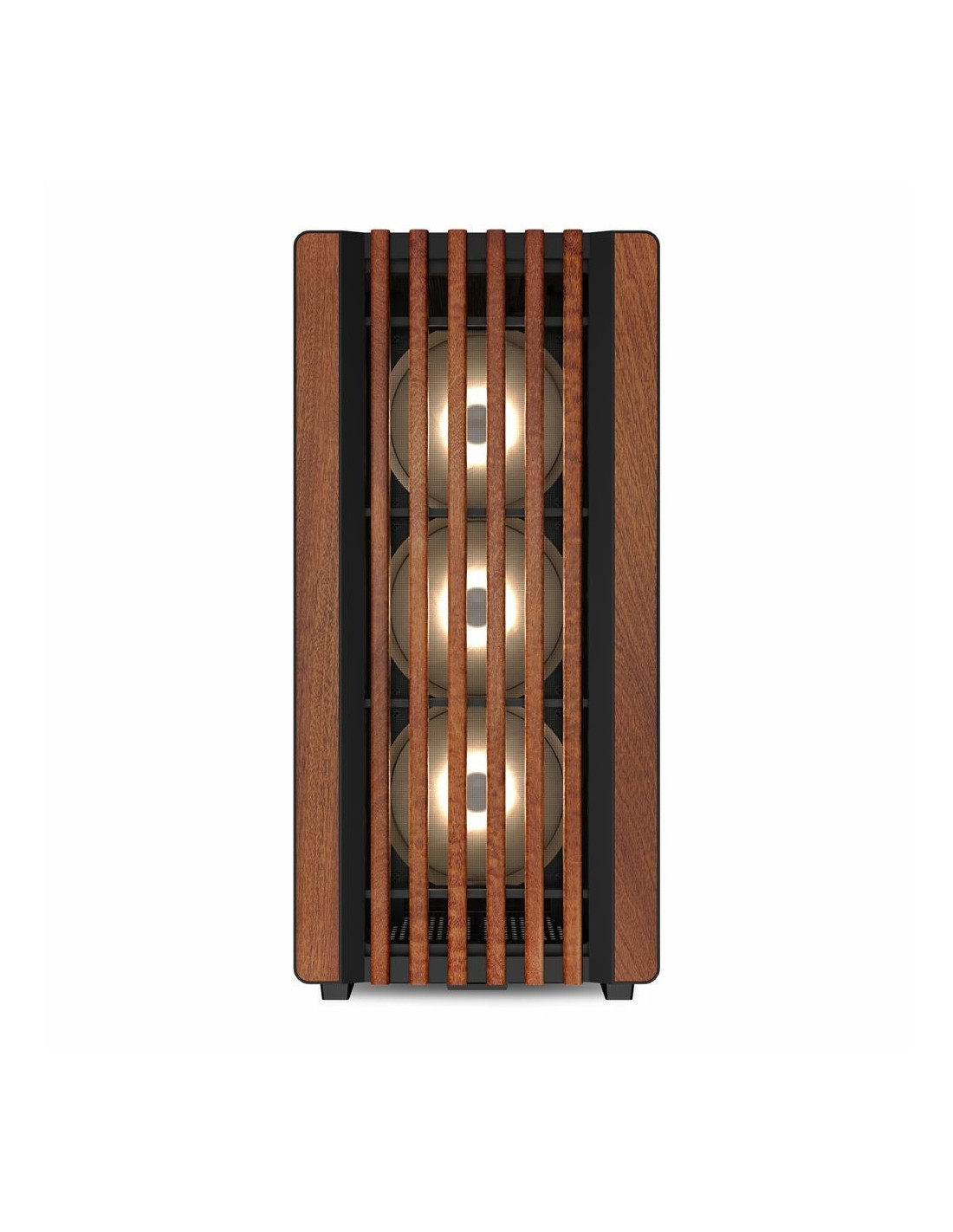 Con su elegante diseño de madera para el panel frontal y el panel lateral de cristal templado sin tornillos, la Rebel C70G RGB añade un toque de estilo a cualquier sala gaming, al salón o a un estudio. Además de su aspecto llamativo, las opciones de instalación modular permiten espacio para hasta once ventiladores de 120 mm o dos radiadores. Y junto con las superficies perforadas dentro y alrededor de la caja, se garantiza un rendimiento de refrigeración óptimo incluso para configuraciones de gama alta. Pero esto no es todo: la eficiencia continua de la caja de PC se ve respaldada por sus conexiones USB-C y TRRS preparadas para el futuro.