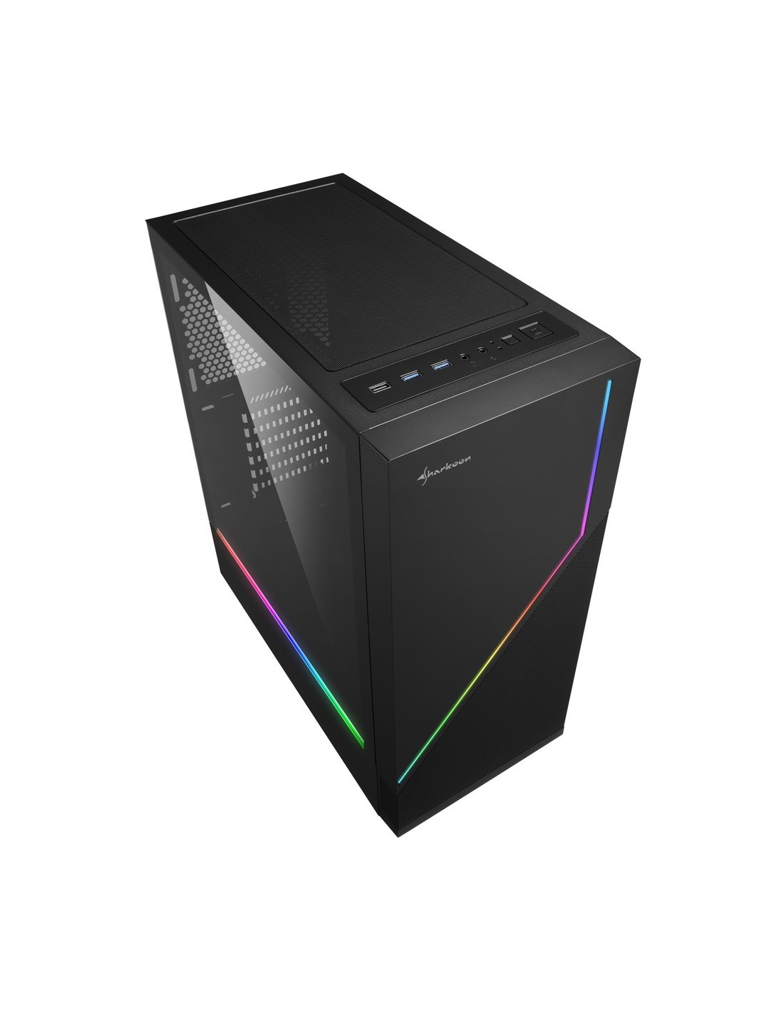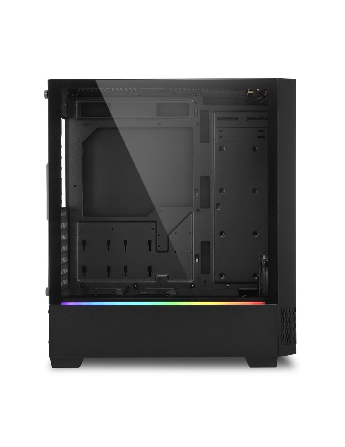 Sharkoon RGB FLOW. Factor de forma: Midi Tower, Tipo: PC, Color del producto: Negro. Ventiladores frontales instalados: 1x 120 mm, Diámetro de ventiladores frontales soportados: 120 mm, Diámetro de ventiladores traseros soportados: 120 mm. Tamaños de disco duro soportados: 2.5,3.5". Ancho: 206 mm, Profundidad: 424 mm, Altura: 481 mm