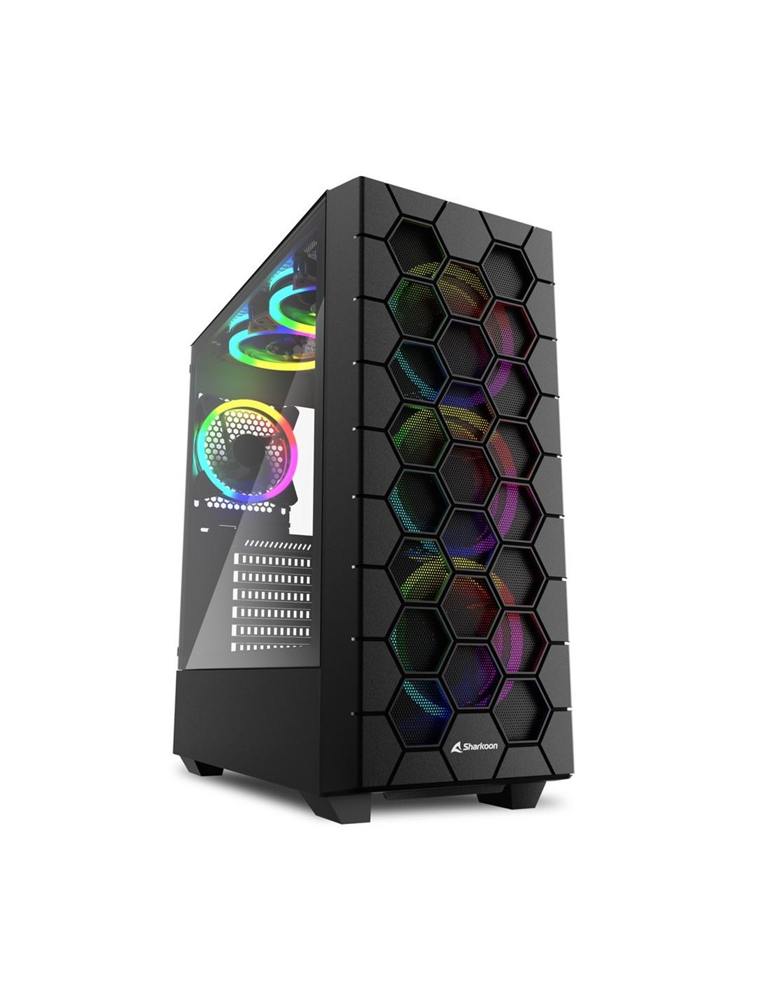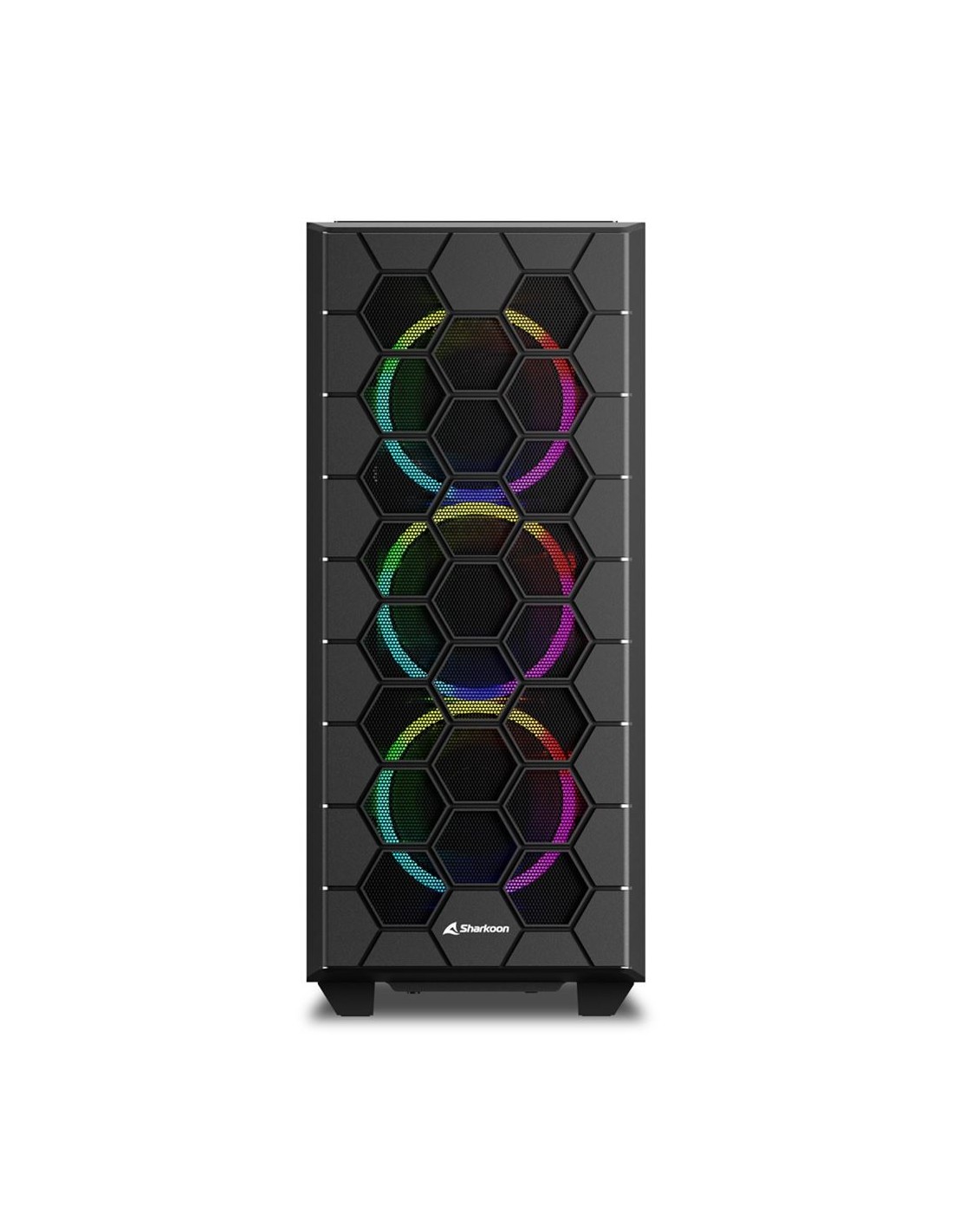 Sharkoon RGB HEX. Factor de forma: Escritorio, Tipo: PC, Color del producto: Negro. Ventiladores frontales instalados: 3x 120 mm, Diámetro de ventiladores frontales soportados: 120 mm, Ventiladores traseros instalados: 1x 120 mm. Tamaños de disco duro soportados: 2.5,3.5", Factor de forma de disco SSD: M.2. Ancho: 203,2 mm, Profundidad: 431,8 mm, Altura: 482,6 mm