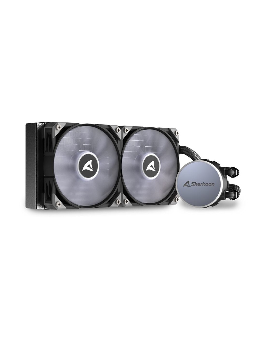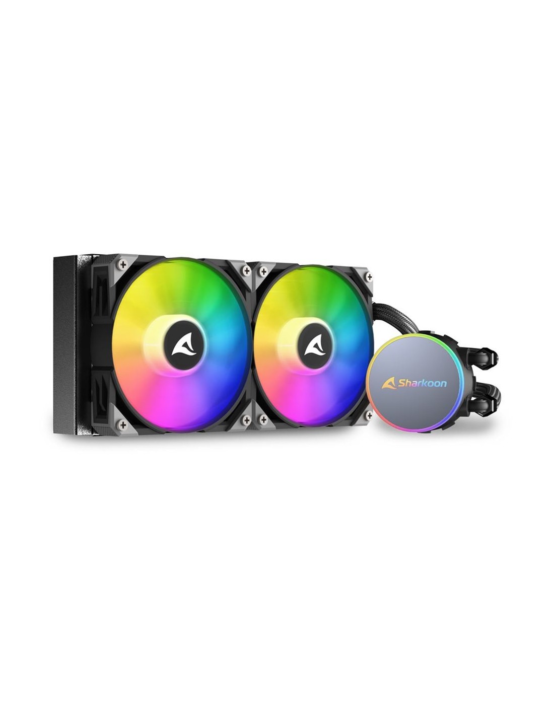 Sharkoon S70 rgb. Tipo: Sistema de refrigeración líquida todo en uno, Diámetro de ventilador: 12 cm, Velocidad de rotación (mín.): 600 RPM, Velocidad de rotación (máx.): 2000 RPM, flujo de aire: 131,93 m³/h, Presión máxima de aire: 2,9 mmH2O. Color del producto: Negro