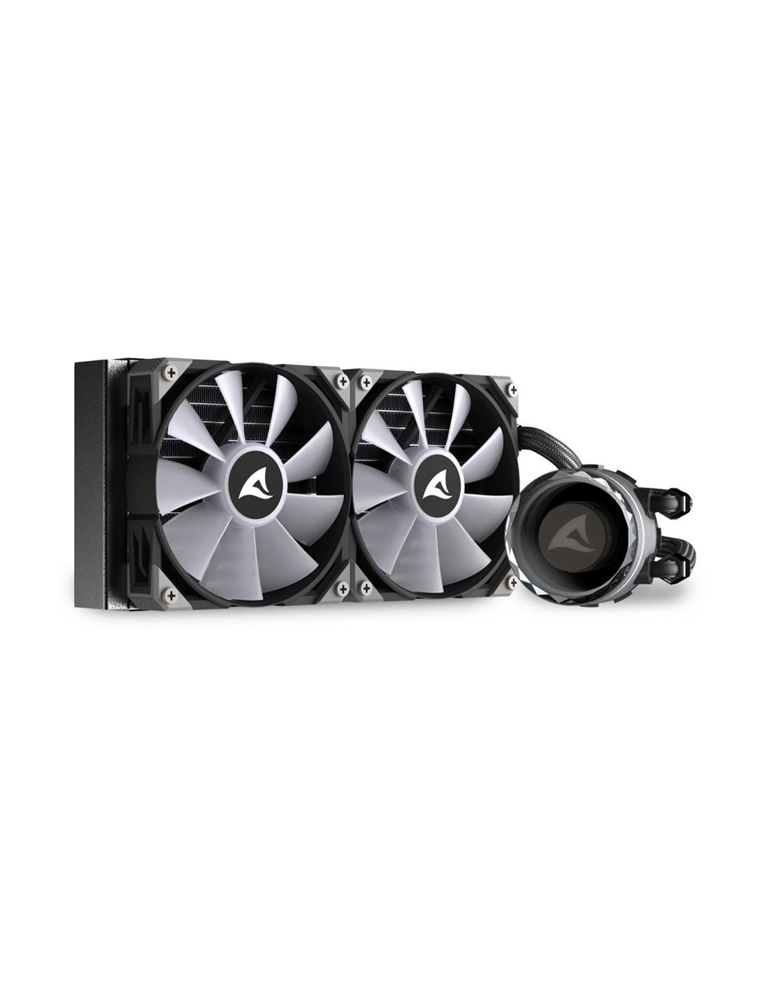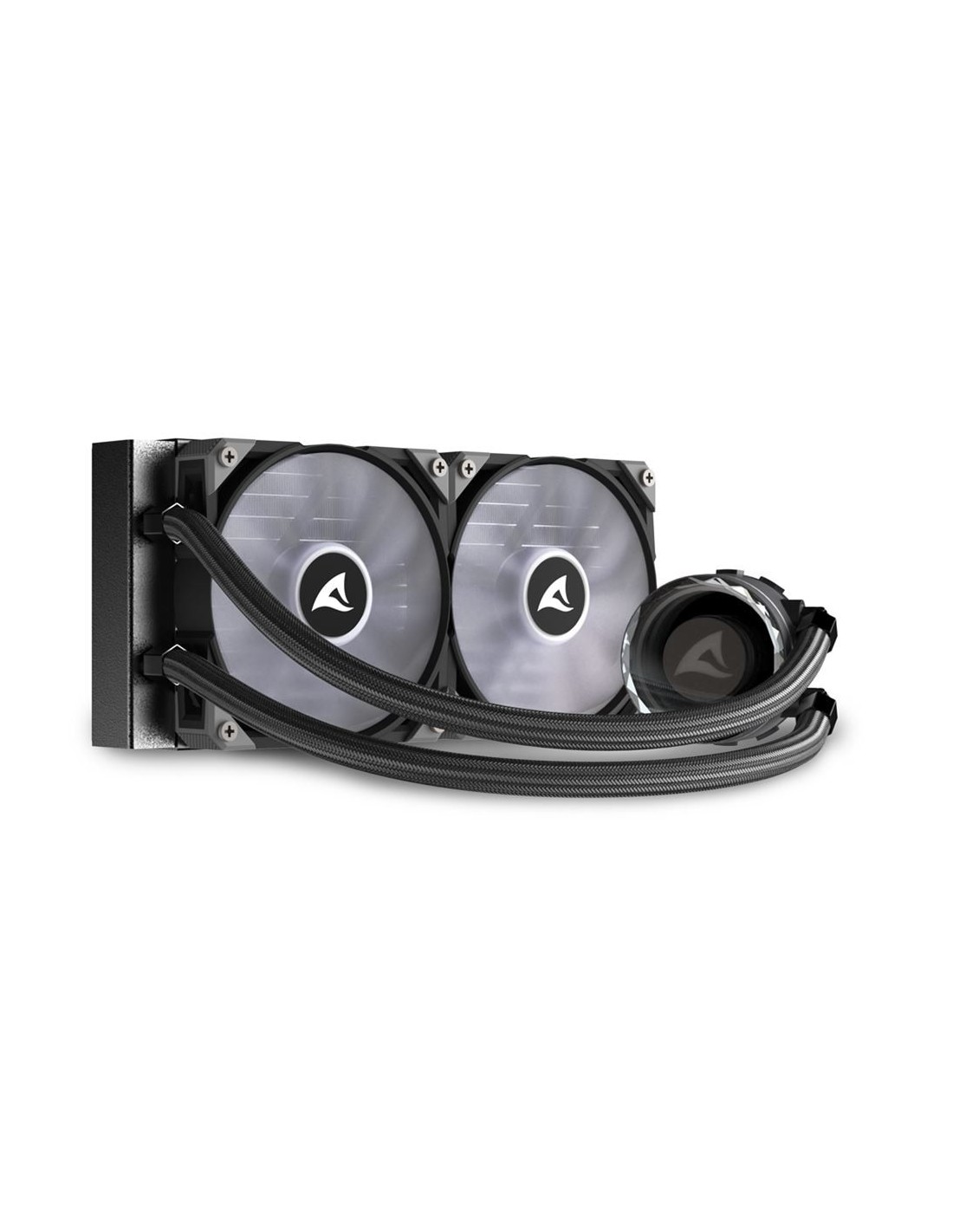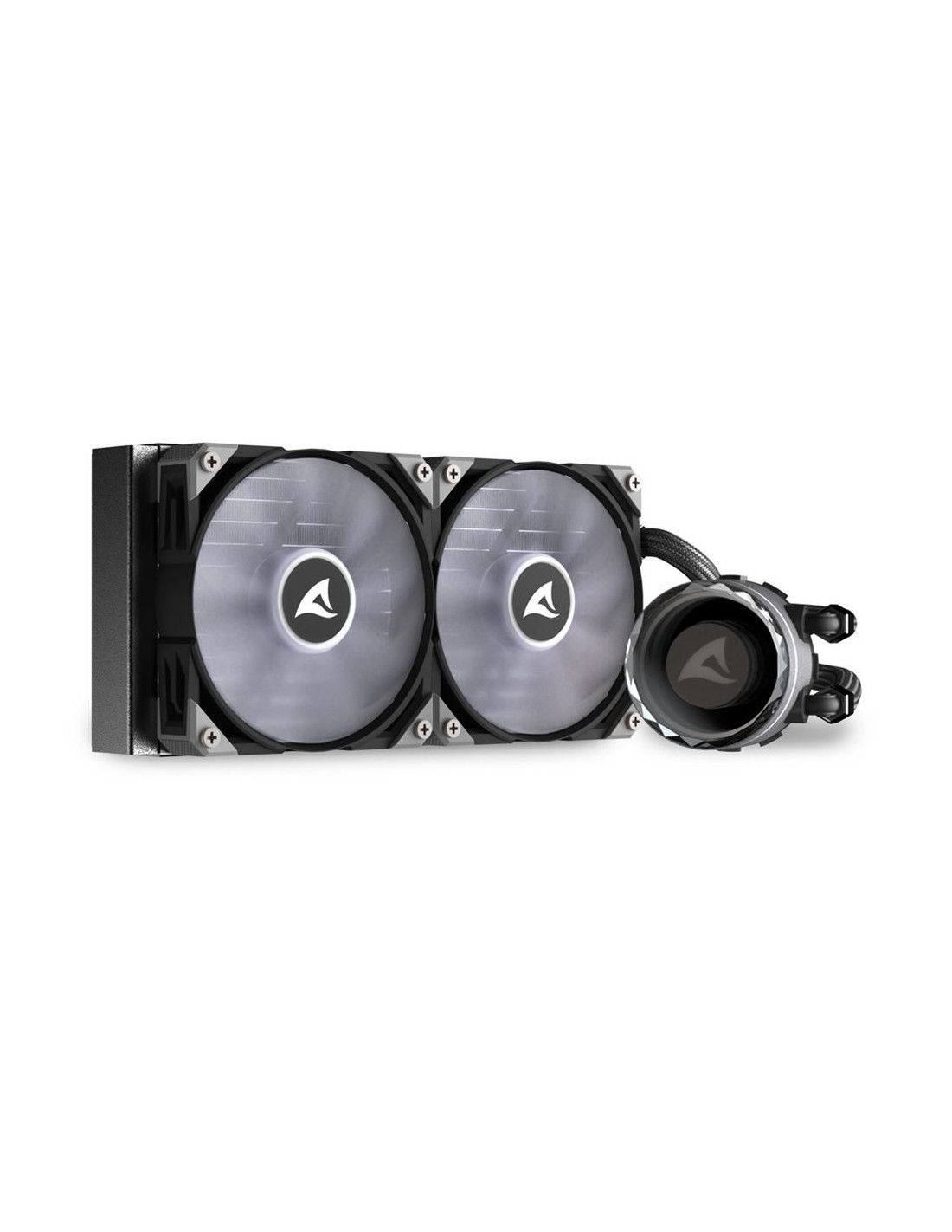 Sharkoon S80 RGB. Tipo: Sistema de refrigeración líquida todo en uno, Diámetro de ventilador: 12 cm, Velocidad de rotación (mín.): 600 RPM, Velocidad de rotación (máx.): 2000 RPM, flujo de aire: 131,93 m³/h, Presión máxima de aire: 2,9 mmH2O. Color del producto: Negro