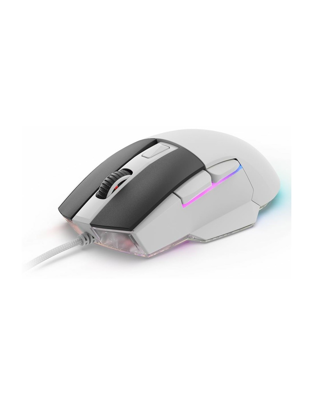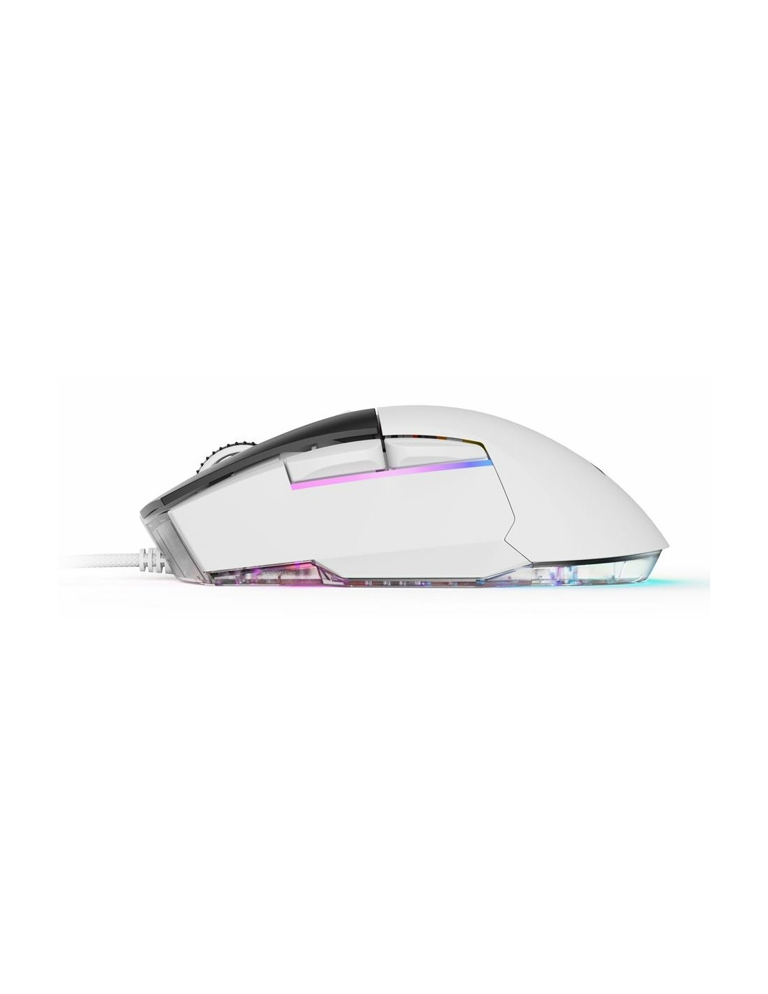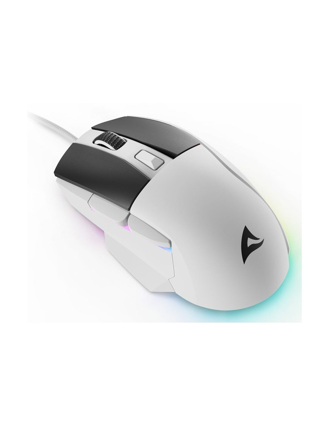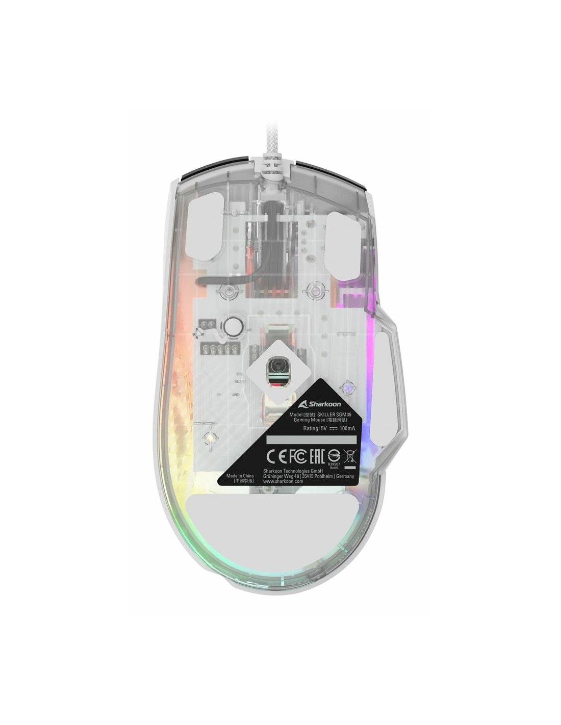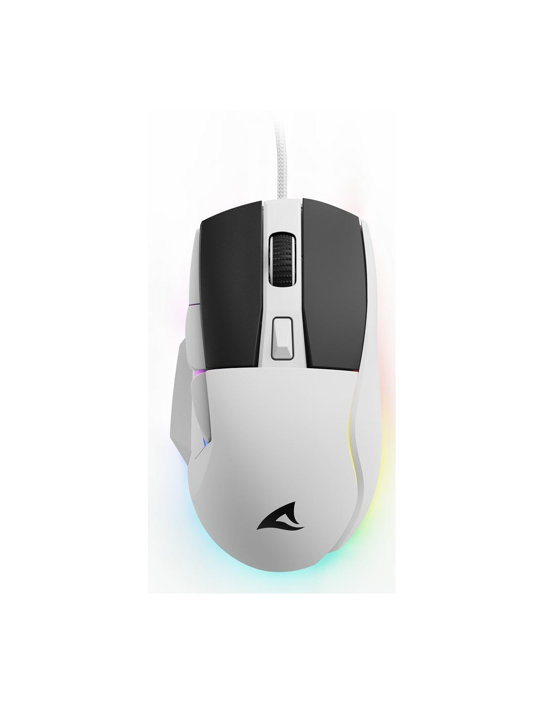 Sharkoon SGM35. Factor de forma: mano derecha. Tecnología de detección de movimientos: Óptico, Interfaz del dispositivo: USB tipo A, Resolución de movimiento: 6400 DPI, Tipo de botones: Botones presionados, Cantidad de botones: 6, Tipo de desplazamiento: Rueda, Aceleración (máx.): 20 G. Iluminación de color: Multi. Fuente de energía: Cable. Color del producto: Blanco