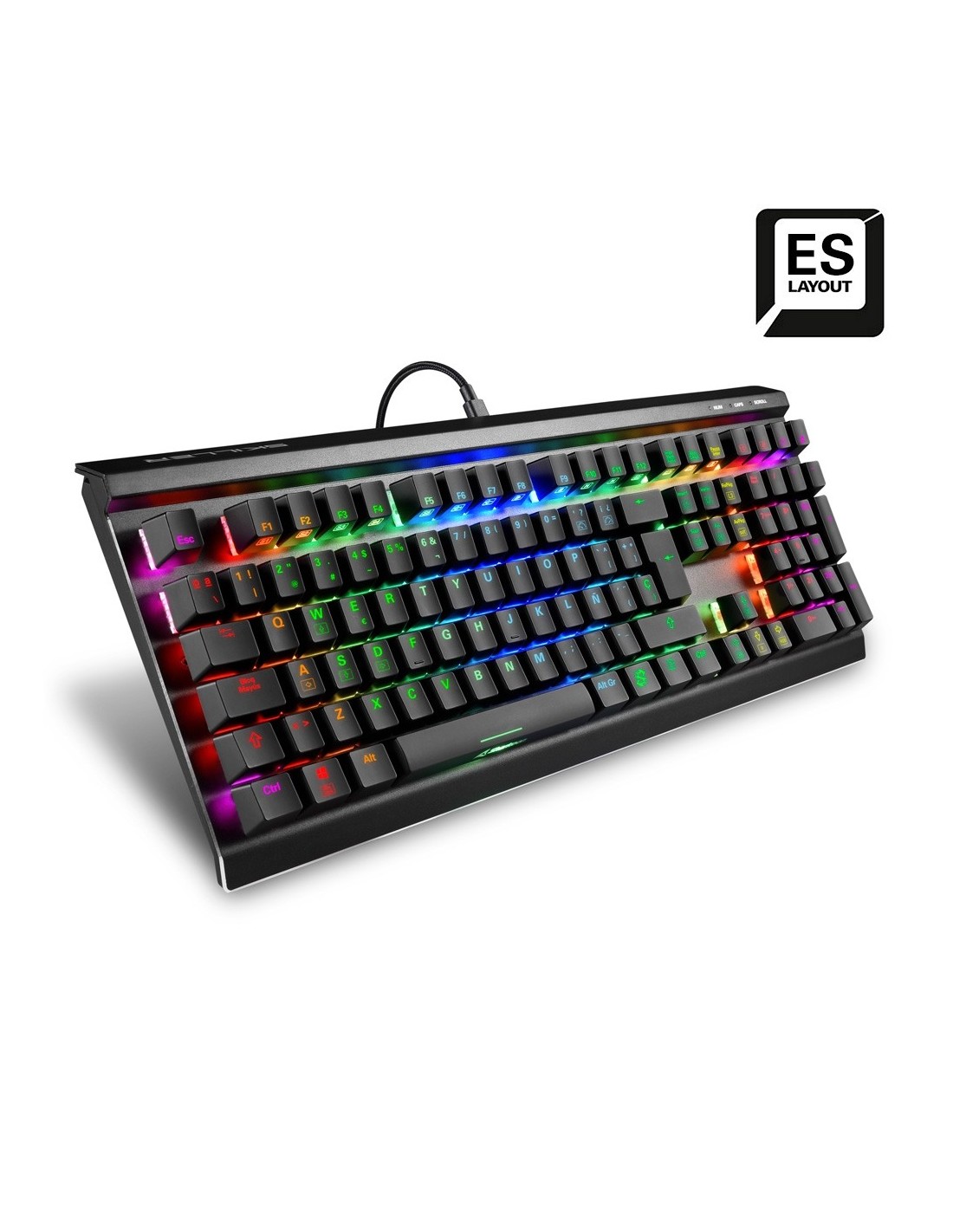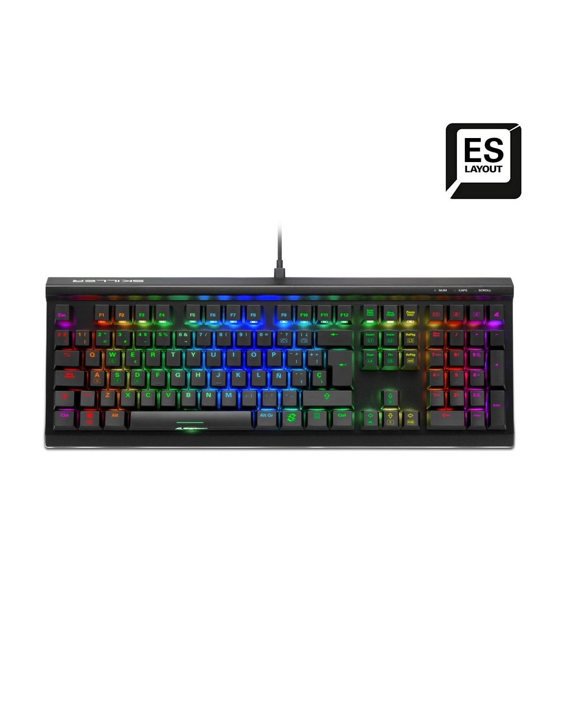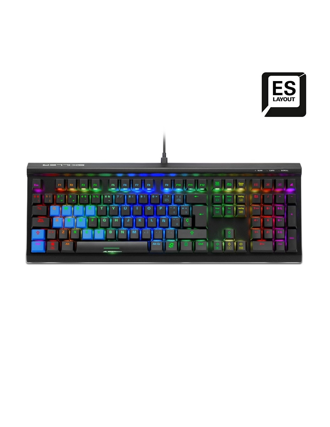Sharkoon SKILLER SGK60. Formato del teclado: Completo (100%). Estilo de teclado: Derecho. Tecnología de conectividad: Alámbrico, Interfaz del dispositivo: USB, Interruptor del teclado: Interruptor mecánico, Diseño de teclado: QWERTY. Tipo de retroiluminación: LED RGB. Uso recomendado: Juego. Color del producto: Negro