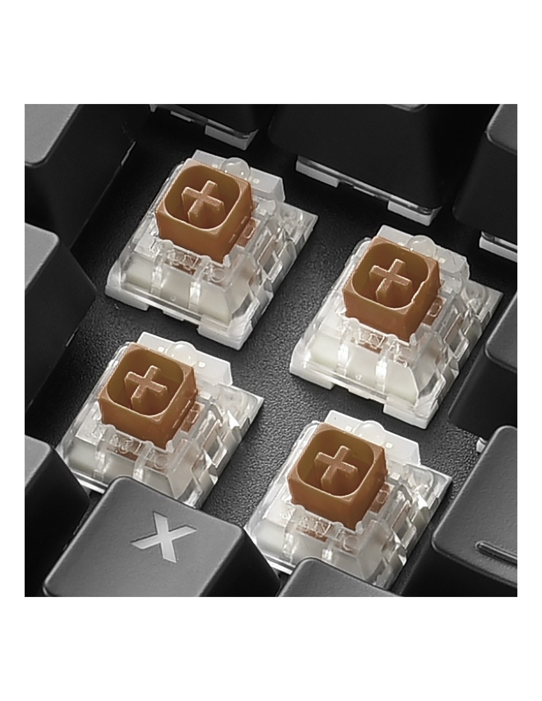 Con el SKILLER SGK60, el usuario no dispondrá simplemente un teclado mecánico más. Con una selección en tres diferentes modelos de los innovadores interruptores Kailh BOX, el teclado ofrece la sensación de mecanografía deseada, ya sea para trabajo o para gaming. El teclado también incluye 14 casquetes de tecla PBT resistentes a la abrasión. Éstos han sido fabricados usando el proceso de doble inyección para un uso prolongado sin ningún signo de desgaste. Y como toque final, el diseño visual es completado con una elegante superficie de aluminio con un corte especial. SWITCHES MARRONES (interruptores): táctiles con punto de conexión detectable y clic point indetectable.