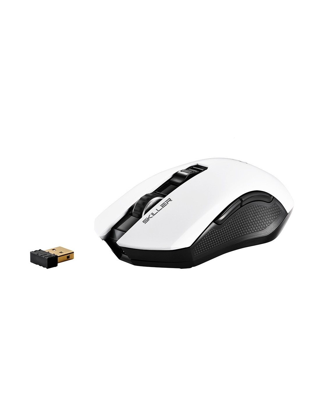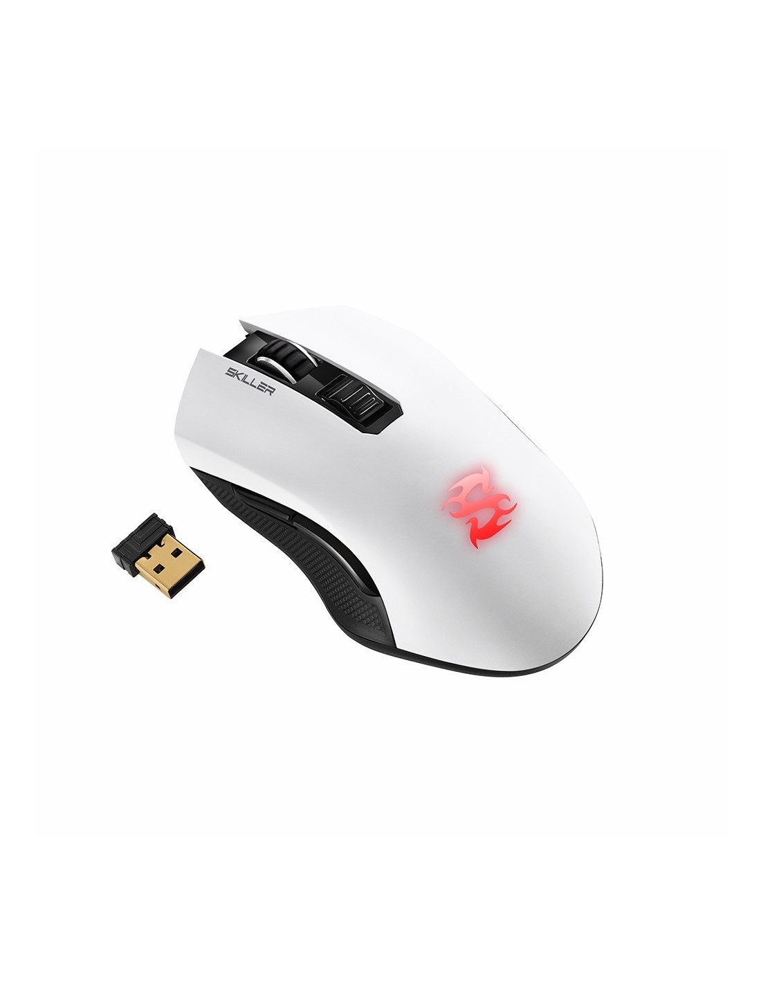 Sharkoon Skiller SGM3, mano derecha, Óptico, RF Wireless + USB Type-A, 6000 DPI, Blanco