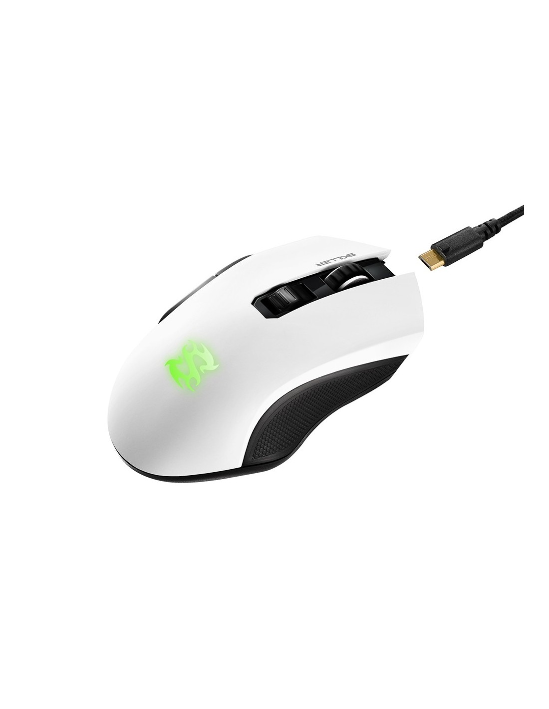Sharkoon Skiller SGM3. Factor de forma: mano derecha. Tecnología de detección de movimientos: Óptico, Interfaz del dispositivo: RF Wireless + USB Type-A, Resolución de movimiento: 6000 DPI, Tipo de botones: Botones presionados, Cantidad de botones: 7, Tipo de desplazamiento: Rueda, Aceleración (máx.): 30 G. Iluminación de color: Multi. Fuente de energía: Baterías/Cable. Color del producto: Blanco