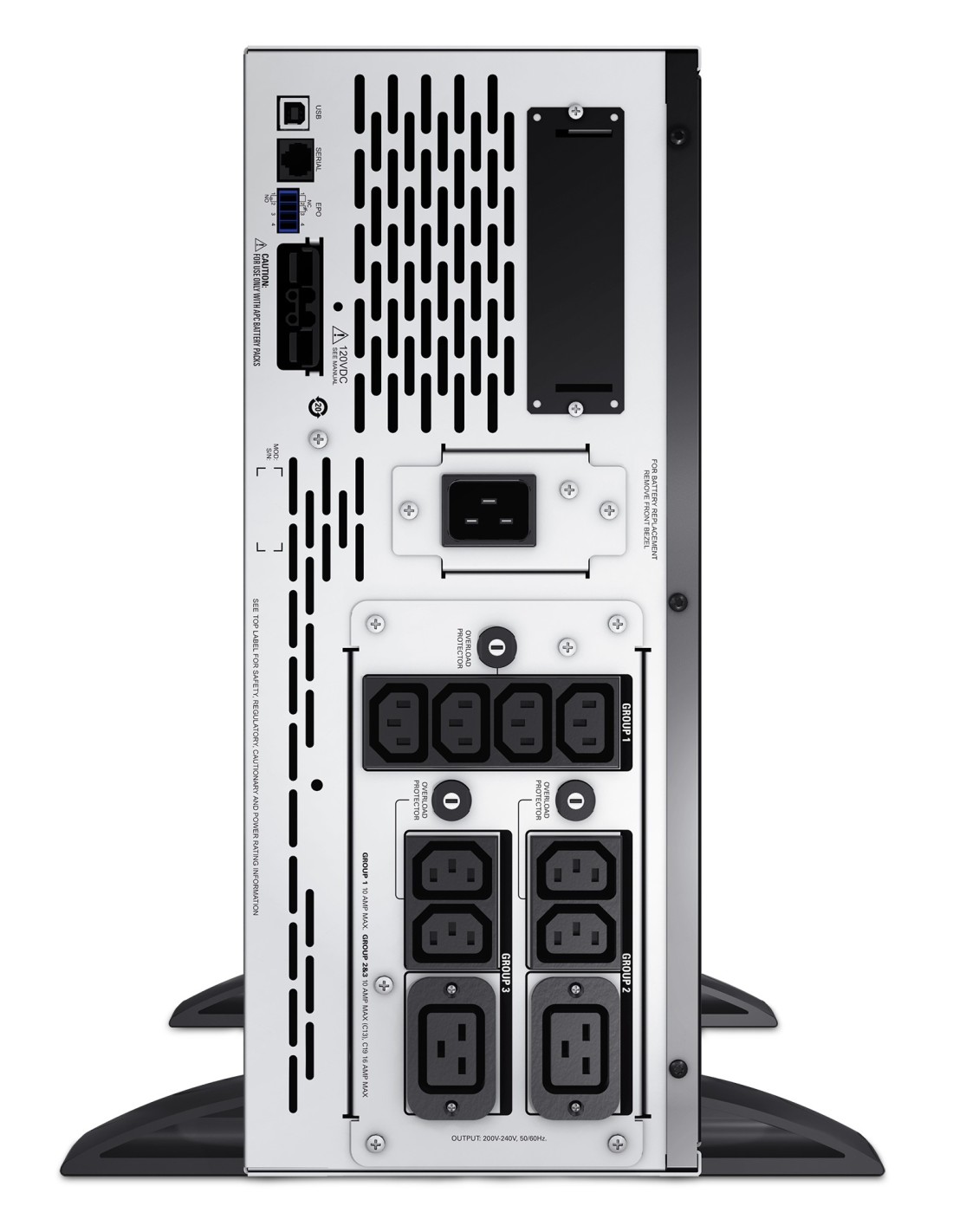 APC Smart-UPS. Topología UPS: Línea interactiva, Capacidad de potencia de salida (VA): 3 kVA, Potencia de salida: 2700 W. Tipo de salida AC: C13 acoplador, C19 acoplador, Conector: C20 acoplador, Cantidad de salidas AC: 10 salidas AC. Tecnología de batería: Sealed Lead Acid (VRLA), Capacidad de la batería: 738 VAh, Tiempo típico de respaldo a carga completa: 6,25 min. Factor de forma: Montaje en rack/Torre o Montaje en bastidor/Torre, Color del producto: Negro, Acero inoxidable, Capacidad del rack: 4U. Certificados de conformidad: RoHS, Certificación: C-tick, CE, CSA, EN 50091-1, EN 50091-2, EN 60950, FCC Part 15 Class A, GOST, IRAM, UL 1778, VDE, ...