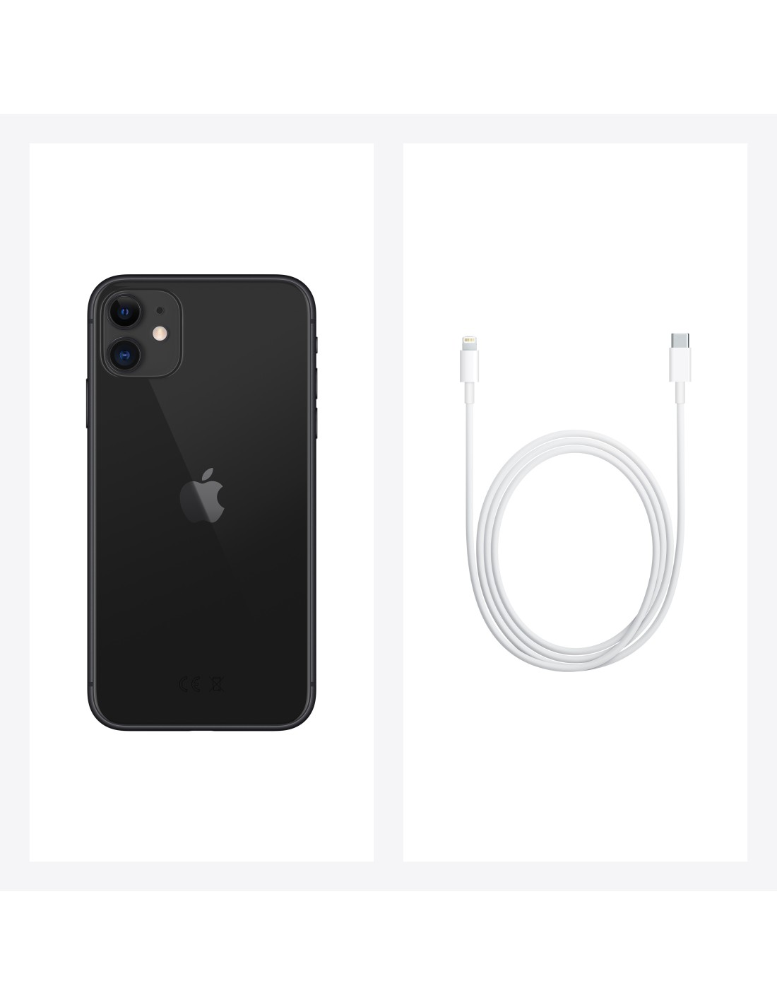 Apple iPhone 11. Diagonal de la pantalla: 15,5 cm (6.1"), Resolución de la pantalla: 1792 x 828 Pixeles. Familia de procesador: Apple, Modelo del procesador: A13. Capacidad de almacenamiento interno: 128 GB. Resolución de la cámara trasera (numérica): 12 MP, Tipo de cámara trasera: Cámara doble. Capacidad de la tarjeta SIM: SIM doble. Sistema operativo instalado: iOS 14. Color del producto: Negro. Peso: 194 g