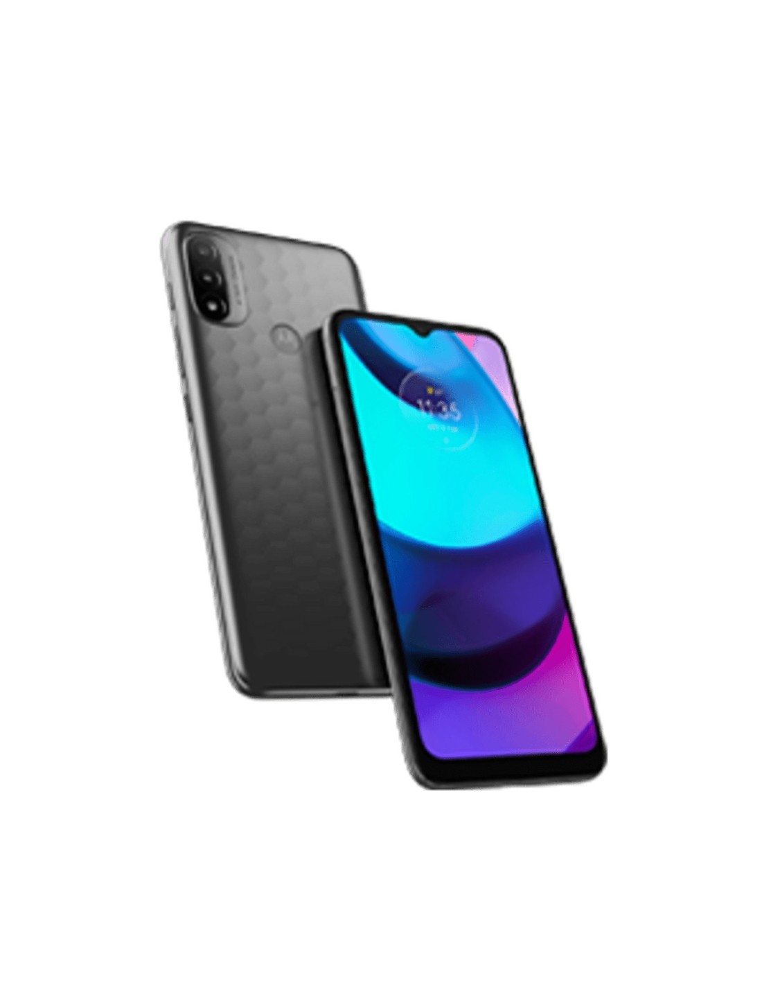 Motorola 20. Diagonal de la pantalla: 16,5 cm (6.5"), Resolución de la pantalla: 1600 x 720 Pixeles. Familia de procesador: Unisoc, Modelo del procesador: T606. Capacidad de RAM: 2 GB, Tipo de RAM: LPDDR4X, Capacidad de almacenamiento interno: 32 GB. Resolución de la cámara trasera (numérica): 13 MP, Tipo de cámara trasera: Cámara doble. Capacidad de la tarjeta SIM: SIM doble. Sistema operativo instalado: Android 11 Go Edition. Capacidad de batería: 4000 mAh. Color del producto: Grafito. Peso: 184 g