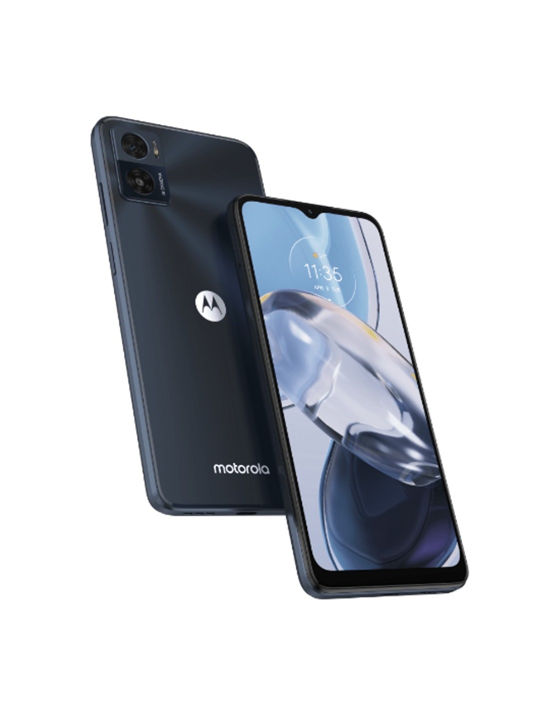 Motorola moto e22. Diagonal de la pantalla: 16,5 cm (6.5"), Resolución de la pantalla: 1600 x 720 Pixeles. Familia de procesador: MediaTek, Modelo del procesador: Helio G37. Capacidad de RAM: 4 GB, Capacidad de almacenamiento interno: 64 GB. Resolución de la cámara trasera (numérica): 16 MP, Tipo de cámara trasera: Cámara doble. Capacidad de la tarjeta SIM: SIM doble. Sistema operativo instalado: Android 12. Capacidad de batería: 4020 mAh. Color del producto: Negro. Peso: 169 g
