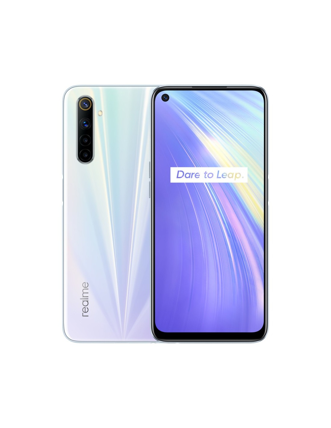 realme 6. Diagonal de la pantalla: 16,5 cm (6.5"), Resolución de la pantalla: 2400 x 1080 Pixeles. Frecuencia del procesador: 2,05 GHz, Familia de procesador: MediaTek, Modelo del procesador: Helio G90T. Capacidad de RAM: 4 GB, Tipo de RAM: LPDDR4X, Capacidad de almacenamiento interno: 128 GB. Resolución de la cámara trasera (numérica): 64 MP, Tipo de cámara trasera: Cámara cuádruple. Capacidad de la tarjeta SIM: SIM doble. Sistema operativo instalado: Android 10. Capacidad de batería: 4300 mAh. Color del producto: Blanco. Peso: 191 g