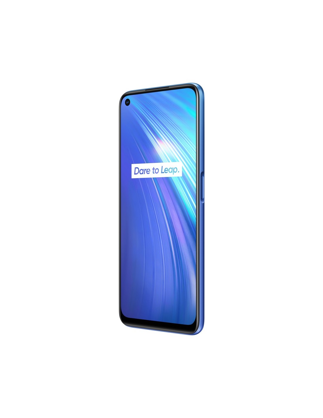 realme 6. Diagonal de la pantalla: 16,5 cm (6.5"), Resolución de la pantalla: 2400 x 1080 Pixeles. Frecuencia del procesador: 2,05 GHz, Familia de procesador: MediaTek, Modelo del procesador: Helio G90T. Capacidad de RAM: 4 GB, Tipo de RAM: LPDDR4X, Capacidad de almacenamiento interno: 64 GB. Resolución de la cámara trasera (numérica): 64 MP, Tipo de cámara trasera: Cámara cuádruple. Capacidad de la tarjeta SIM: SIM doble. Sistema operativo instalado: Android 10. Capacidad de batería: 4300 mAh. Color del producto: Azul. Peso: 191 g