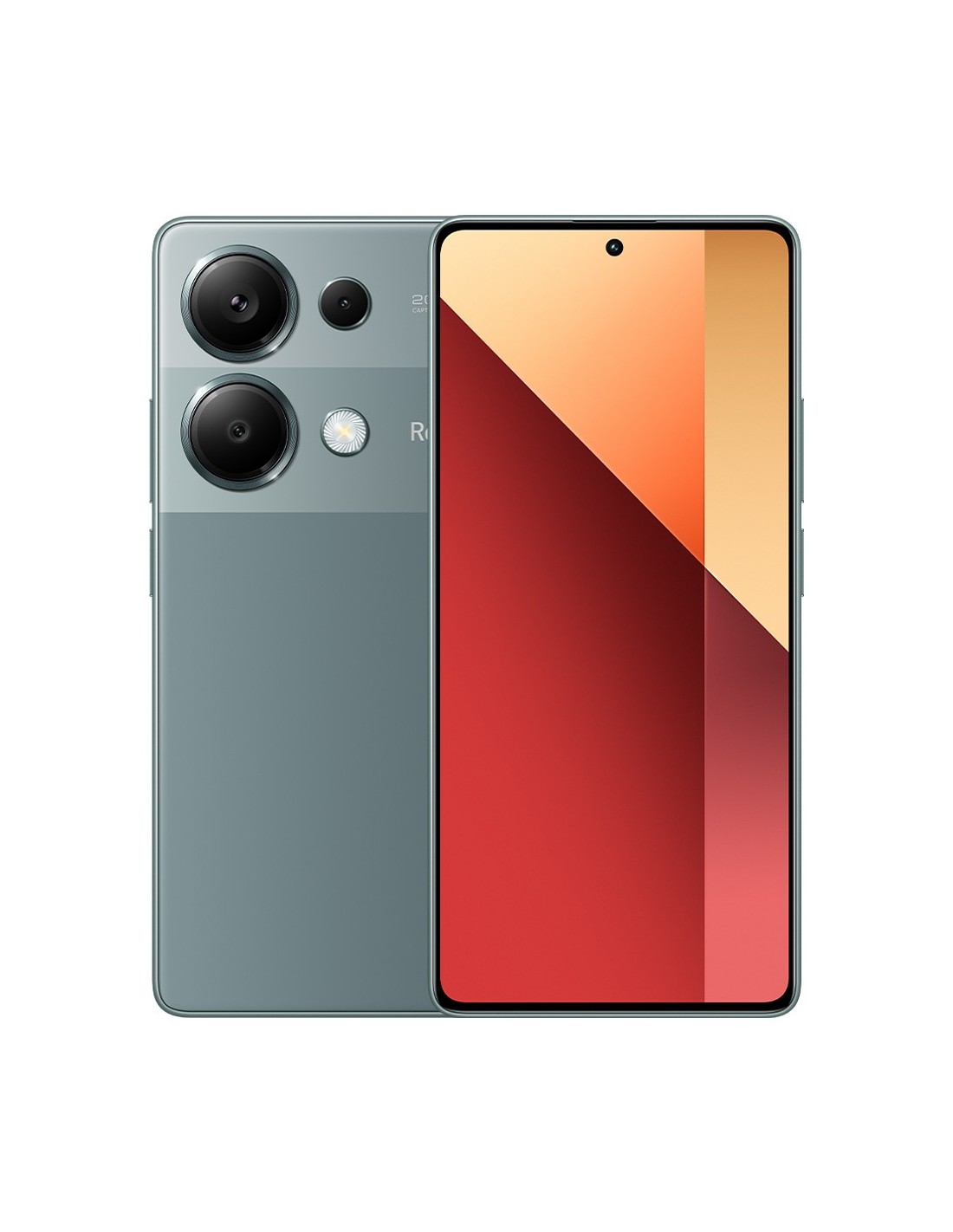 Xiaomi Redmi Note 13 Pro. Diagonal de la pantalla: 16,9 cm (6.67"), Resolución de la pantalla: 2400 x 1080 Pixeles. Familia de procesador: MediaTek, Modelo del procesador: Helio G99 Ultra. Capacidad de RAM: 8 GB, Tipo de RAM: LPDDR4X, Capacidad de almacenamiento interno: 256 GB. Resolución de la cámara trasera (numérica): 200 MP, Tipo de cámara trasera: Triple cámara. Capacidad de la tarjeta SIM: SIM doble. Sistema operativo instalado: Android 13. Capacidad de batería: 5000 mAh. Color del producto: Verde. Peso: 188 g