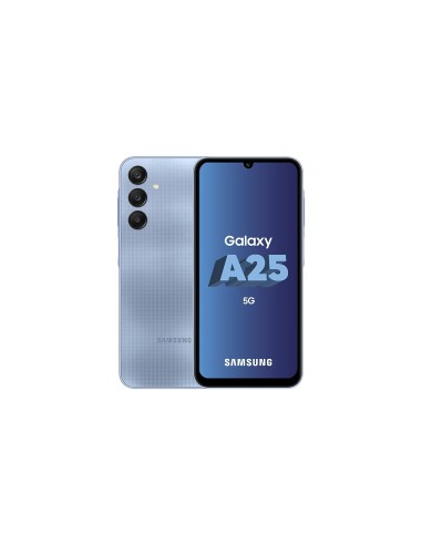 Samsung Galaxy A25 5G . Diagonal de la pantalla: 16,5 cm (6.5"), Resolución de la pantalla: 1080 x 2340 Pixeles. Frecuencia del procesador: 2 GHz, Familia de procesador: Samsung Exynos, Modelo del procesador: 1280. Capacidad de RAM: 8 GB, Capacidad de almacenamiento interno: 256 GB. Resolución de la cámara trasera (numérica): 50 MP, Tipo de cámara trasera: Triple cámara. Capacidad de la tarjeta SIM: SIM doble. Capacidad de batería: 5000 mAh. Color del producto: Azul. Peso: 197 g