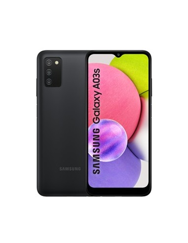 Samsung Galaxy A03s SM-A037G. Diagonal de la pantalla: 16,5 cm (6.5"), Resolución de la pantalla: 720 x 1600 Pixeles. Familia de procesador: MediaTek, Modelo del procesador: MT6765. Capacidad de RAM: 3 GB, Capacidad de almacenamiento interno: 32 GB. Resolución de la cámara trasera (numérica): 13 MP, Tipo de cámara trasera: Triple cámara. Capacidad de la tarjeta SIM: SIM doble. Sistema operativo instalado: Android 11. Capacidad de batería: 5000 mAh. Color del producto: Negro. Peso: 196 g
