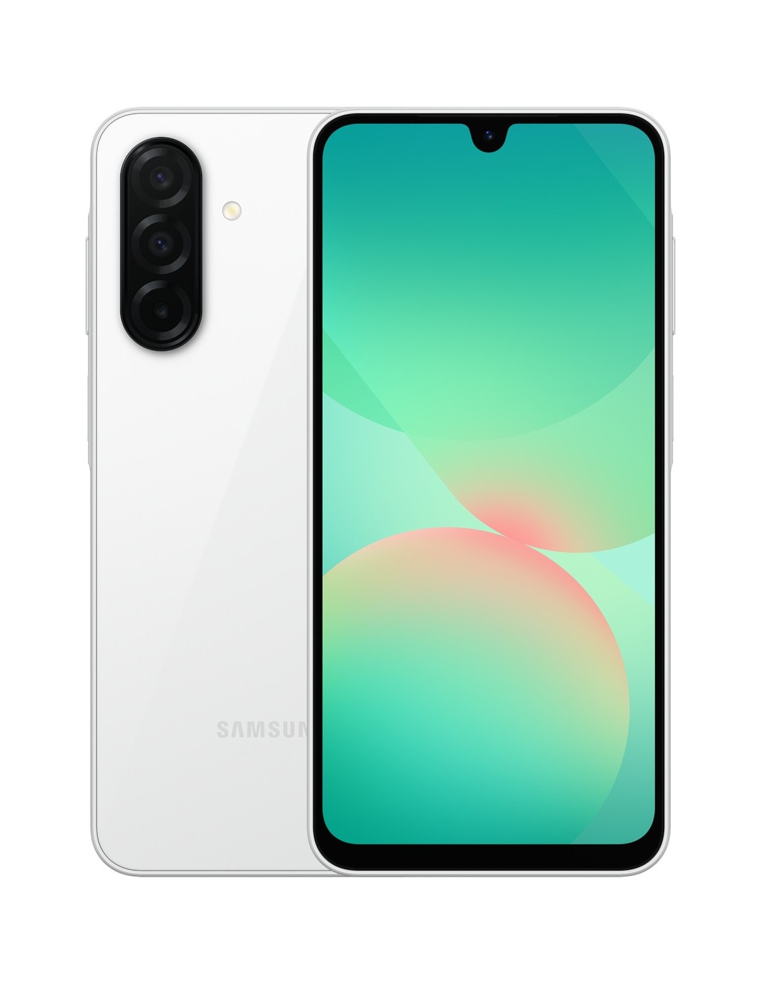 Samsung Galaxy A26 5G. Diagonal de la pantalla: 17 cm (6.7"), Resolución de la pantalla: 1080 x 2340 Pixeles. Familia de procesador: Samsung Exynos. Capacidad de RAM: 8 GB, Capacidad de almacenamiento interno: 256 GB. Resolución de la cámara trasera (numérica): 50 MP, Tipo de cámara trasera: Triple cámara. Capacidad de la tarjeta SIM: Ranura híbrida Dual SIM. Sistema operativo instalado: Android 15. Capacidad de batería: 5000 mAh. Color del producto: Blanco. Peso: 200 g