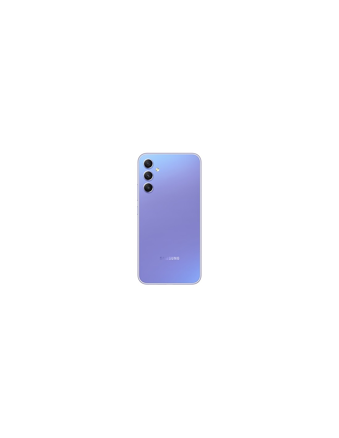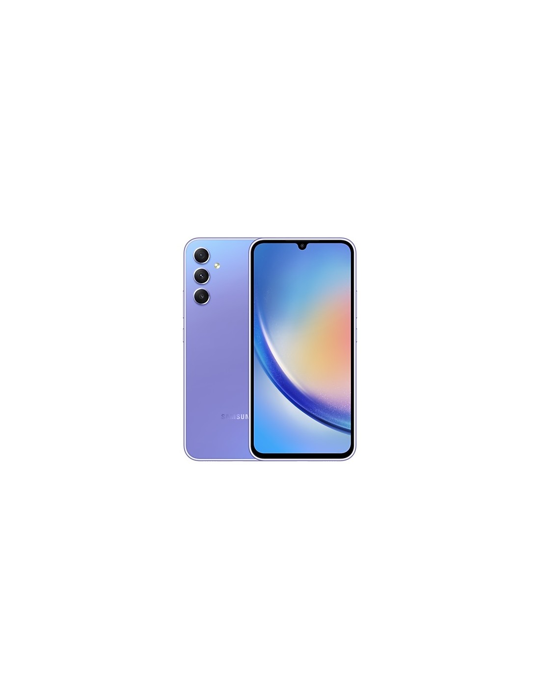 Samsung Galaxy A34 5G . Diagonal de la pantalla: 16,8 cm (6.6"), Resolución de la pantalla: 1080 x 2340 Pixeles. Frecuencia del procesador: 2 GHz, Familia de procesador: MediaTek, Modelo del procesador: Dimensity 1080. Capacidad de RAM: 6 GB, Capacidad de almacenamiento interno: 128 GB. Resolución de la cámara trasera (numérica): 48 MP, Tipo de cámara trasera: Triple cámara. Capacidad de la tarjeta SIM: Ranura híbrida Dual SIM. Capacidad de batería: 5000 mAh. Color del producto: Violeta. Peso: 199 g