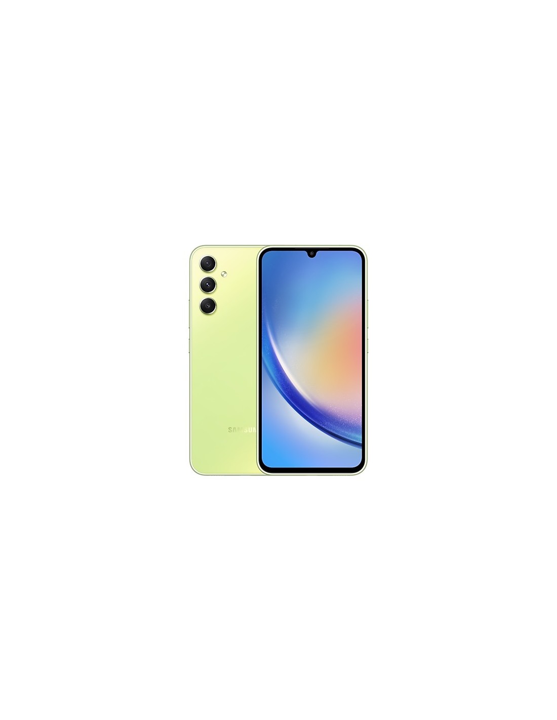 Samsung Galaxy A34 5G . Diagonal de la pantalla: 16,8 cm (6.6"), Resolución de la pantalla: 1080 x 2340 Pixeles. Frecuencia del procesador: 2 GHz, Familia de procesador: MediaTek, Modelo del procesador: Dimensity 1080. Capacidad de RAM: 8 GB, Capacidad de almacenamiento interno: 256 GB. Resolución de la cámara trasera (numérica): 48 MP, Tipo de cámara trasera: Triple cámara. Capacidad de la tarjeta SIM: Ranura híbrida Dual SIM. Capacidad de batería: 5000 mAh. Color del producto: Cal. Peso: 199 g