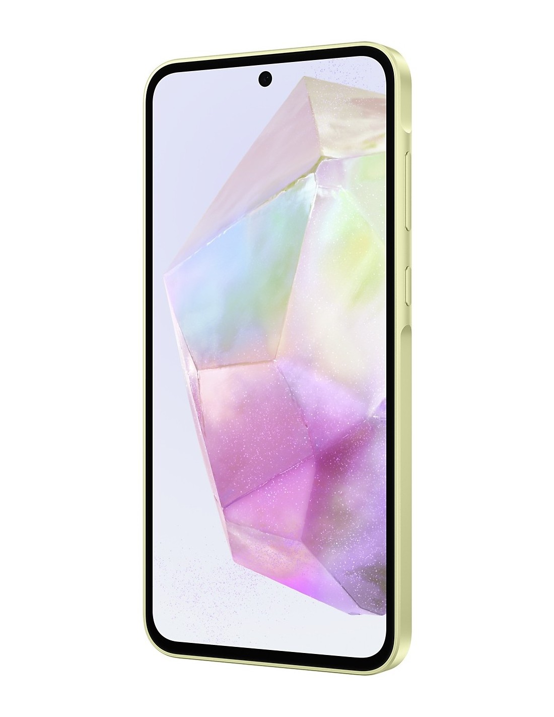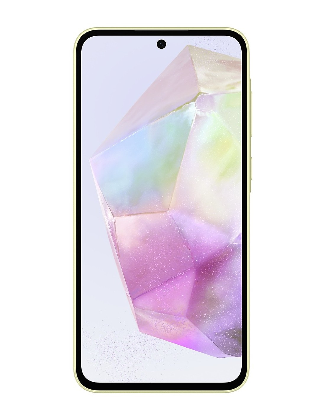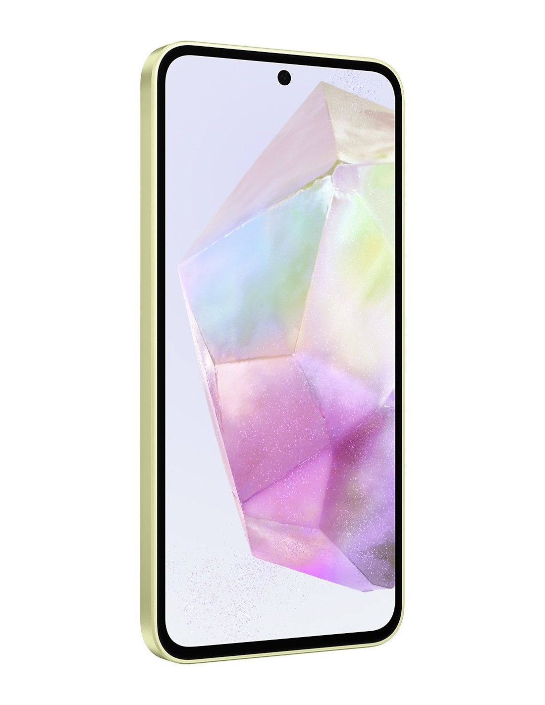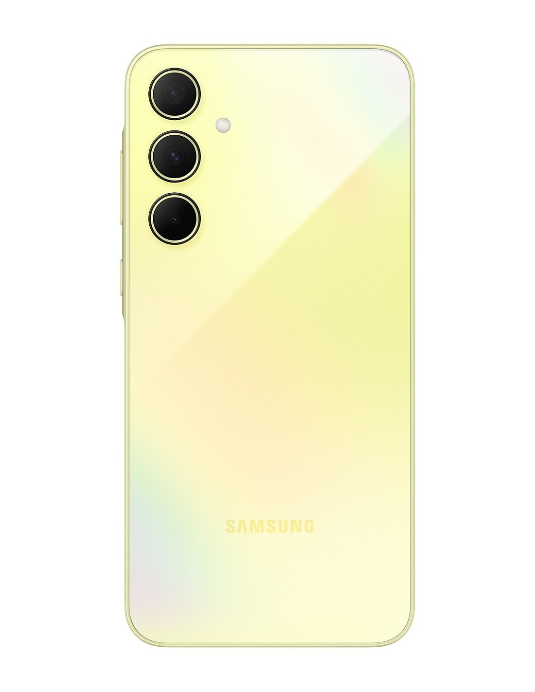 Samsung Galaxy A35 5G . Diagonal de la pantalla: 16,8 cm (6.6"), Resolución de la pantalla: 1080 x 2340 Pixeles. Frecuencia del procesador: 2 GHz, Familia de procesador: Samsung Exynos. Capacidad de RAM: 6 GB, Capacidad de almacenamiento interno: 128 GB. Resolución de la cámara trasera (numérica): 50 MP, Tipo de cámara trasera: Triple cámara. Capacidad de la tarjeta SIM: Ranura híbrida Dual SIM. Sistema operativo instalado: Android 14. Capacidad de batería: 5000 mAh. Color del producto: Amarillo. Peso: 209 g