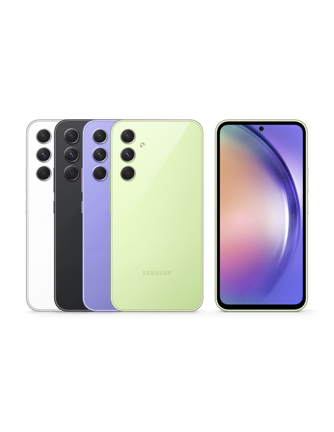 Samsung Galaxy A54 5G . Diagonal de la pantalla: 16,3 cm (6.4"), Resolución de la pantalla: 1080 x 2340 Pixeles. Frecuencia del procesador: 2 GHz, Familia de procesador: Samsung Exynos. Capacidad de RAM: 8 GB, Capacidad de almacenamiento interno: 256 GB. Resolución de la cámara trasera (numérica): 50 MP, Tipo de cámara trasera: Triple cámara. Capacidad de la tarjeta SIM: SIM doble. Sistema operativo instalado: Android 13. Capacidad de batería: 5000 mAh. Color del producto: Blanco. Peso: 202 g