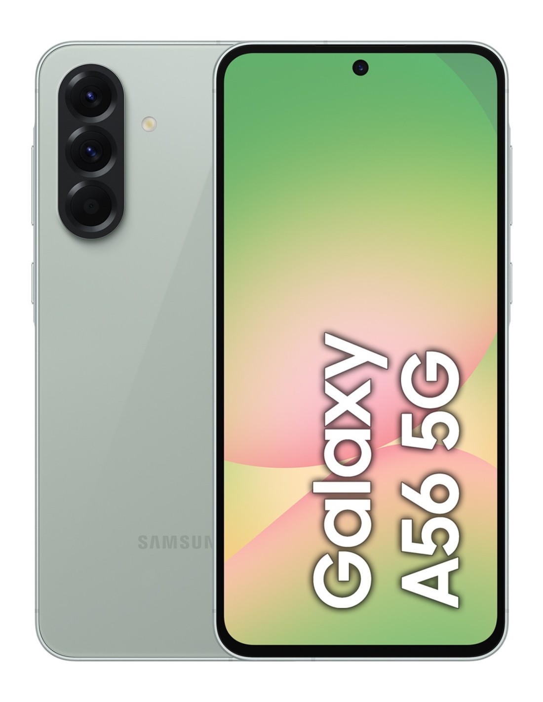 Samsung Galaxy A56 5G. Diagonal de la pantalla: 17 cm (6.7"), Resolución de la pantalla: 1080 x 2340 Pixeles. Familia de procesador: Samsung Exynos, Modelo del procesador: 1580. Capacidad de RAM: 8 GB, Capacidad de almacenamiento interno: 256 GB. Resolución de la cámara trasera (numérica): 50 MP, Tipo de cámara trasera: Triple cámara. Capacidad de la tarjeta SIM: SIM doble. Sistema operativo instalado: Android 15. Capacidad de batería: 5000 mAh. Color del producto: Oliva. Peso: 198 g