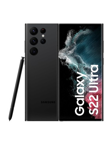Samsung Galaxy S22 Ultra SM-S908B. Diagonal de la pantalla: 17,3 cm (6.8"), Resolución de la pantalla: 3088 x 1440 Pixeles. Frecuencia del procesador: 2,8 GHz, Familia de procesador: Samsung Exynos, Modelo del procesador: 2200. Capacidad de RAM: 8 GB, Capacidad de almacenamiento interno: 128 GB. Resolución de la cámara trasera (numérica): 108 MP, Tipo de cámara trasera: Cámara cuádruple. Capacidad de la tarjeta SIM: SIM doble. Sistema operativo instalado: Android 12. Capacidad de batería: 5000 mAh. Color del producto: Negro. Peso: 228 g