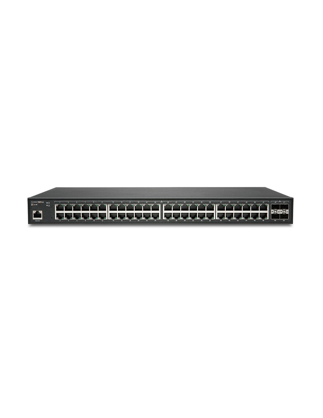 SonicWall SWS14-48. Tipo de interruptor: Gestionado, Capa del interruptor: L2. Puertos tipo básico de conmutación RJ-45 Ethernet: Gigabit Ethernet (10/100/1000), Cantidad de puertos básicos de conmutación RJ-45 Ethernet: 48, Puerto de consola: RJ-45. Tabla de direcciones MAC: 32000 entradas, Capacidad de conmutación: 176 Gbit/s. Estándares de red: IEEE 802.1ab, IEEE 802.1p, IEEE 802.1x. Montaje en rack, Factor de forma: 1U