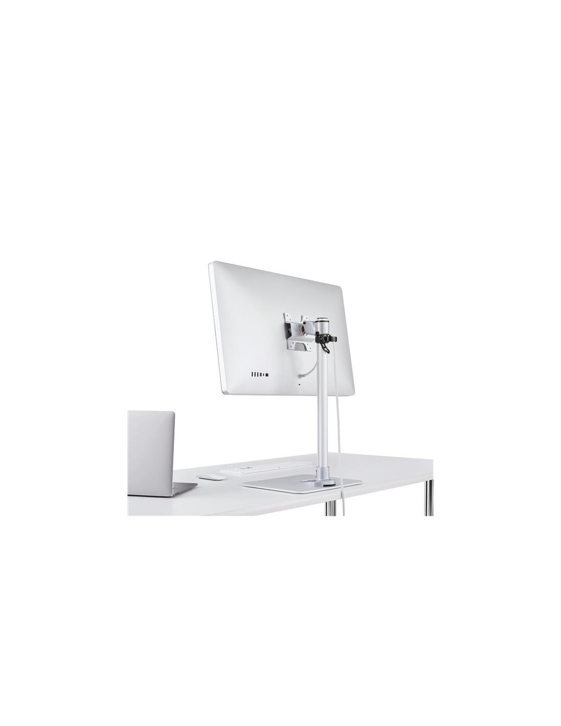 Este resistente soporte para monitor, de elegante acabado en plateado, le ofrece un soporte seguro para su pantalla y es un atractivo accesorio para su espacio de trabajo. El soporte de monitor para escritorio permite flexibilidad de colocación de su pantalla de ordenador y se ajusta fácilmente para visión ideal.