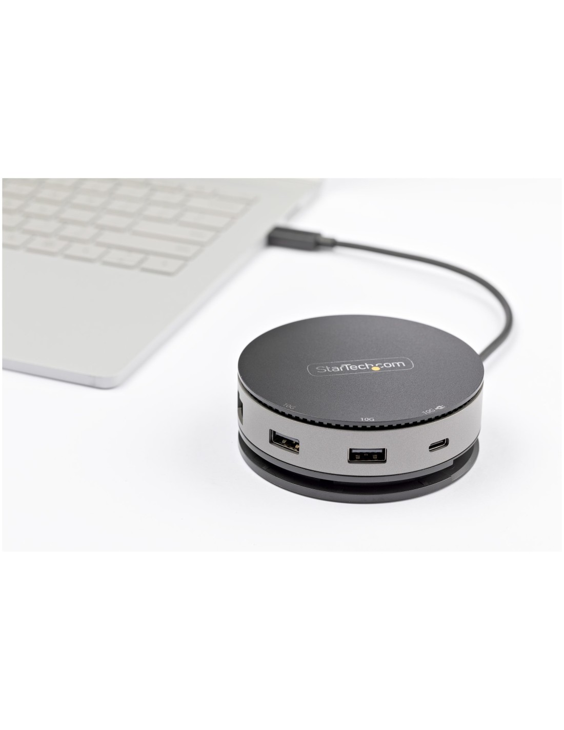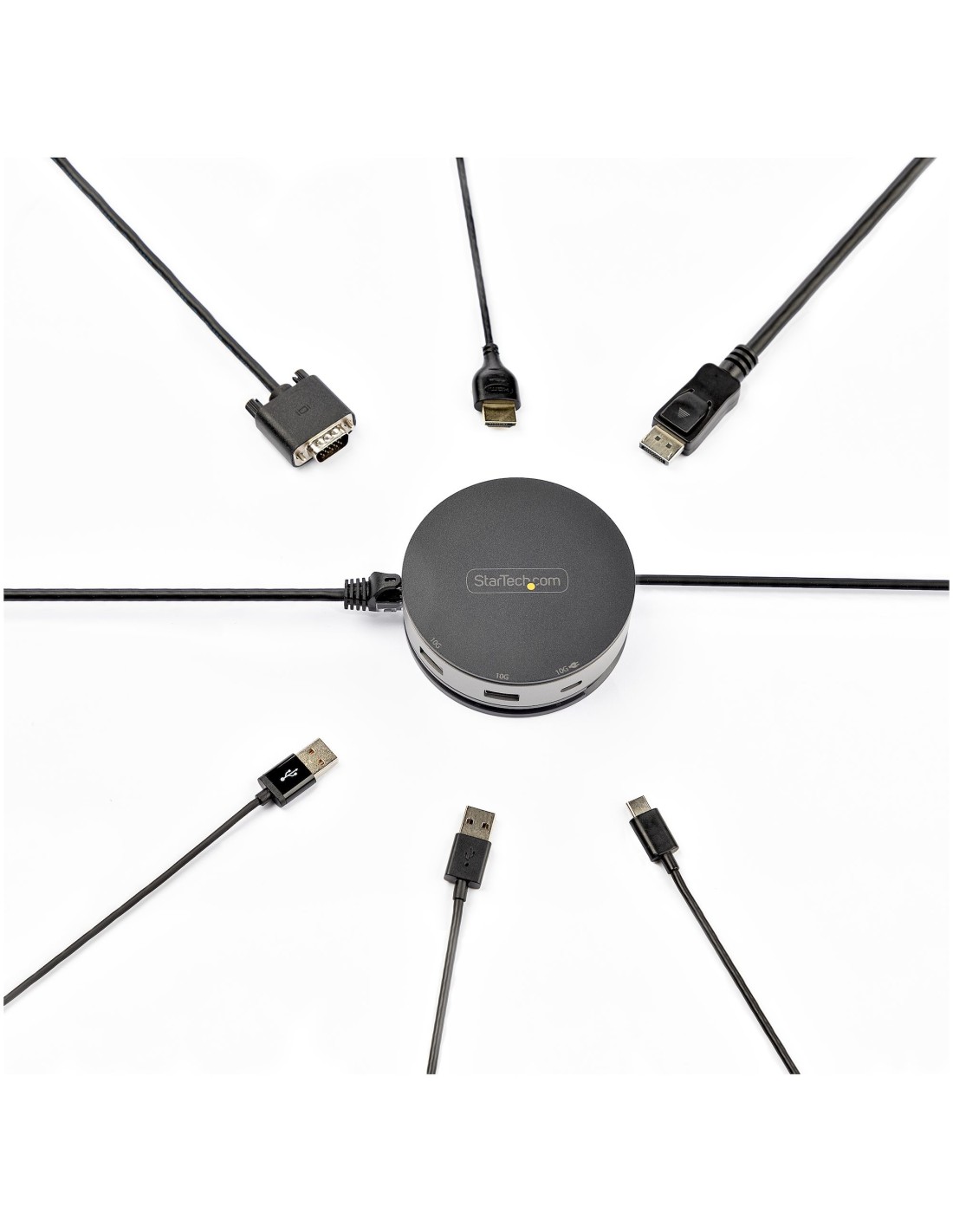 StarTech.com Adaptador Multipuertos USB-C - Docking Station USB 3.1 Gen 2 Tipo C con Vídeo HDMI, DisplayPort de 4K a 60Hz o VGA de 1080p - PD de 75W - Hub Ladrón USB de 3 Puertos - Replicador de Puertos Móvil. Tecnología de conectividad: Alámbrico, Interfaz de host: USB 3.2 Gen 2 (3.1 Gen 2) Type-C, Entrega de energía USB (USB Power Delivery) de hasta: 75 W. Ethernet LAN, velocidad de transferencia de datos: 10,100,1000 Mbit/s, Estándares de red: IEEE 802.3ab, IEEE 802.3i, IEEE 802.3u. Color del producto: Negro, Gris, Velocidad de transferencia de datos: 10 Gbit/s, Resolución (máxima digital): 3840 x 2160 Pixeles. Sistema operativo Windows soportado: Windows 10, Windows 10 Education, Windows 10 Education x64, Windows 10 Enterprise, Windows 10..., Sistema operativo MAC soportado: Mac OS X 10.12 Sierra, Mac OS X 10.13 High Sierra, Mac OS X 10.14 Mojave, Mac OS X 10.15 Catalina,..., Sistemas operativos móviles soportados: Android, iOS. Ancho: 90 mm, Profundidad: 90 mm, Altura: 32,5 mm