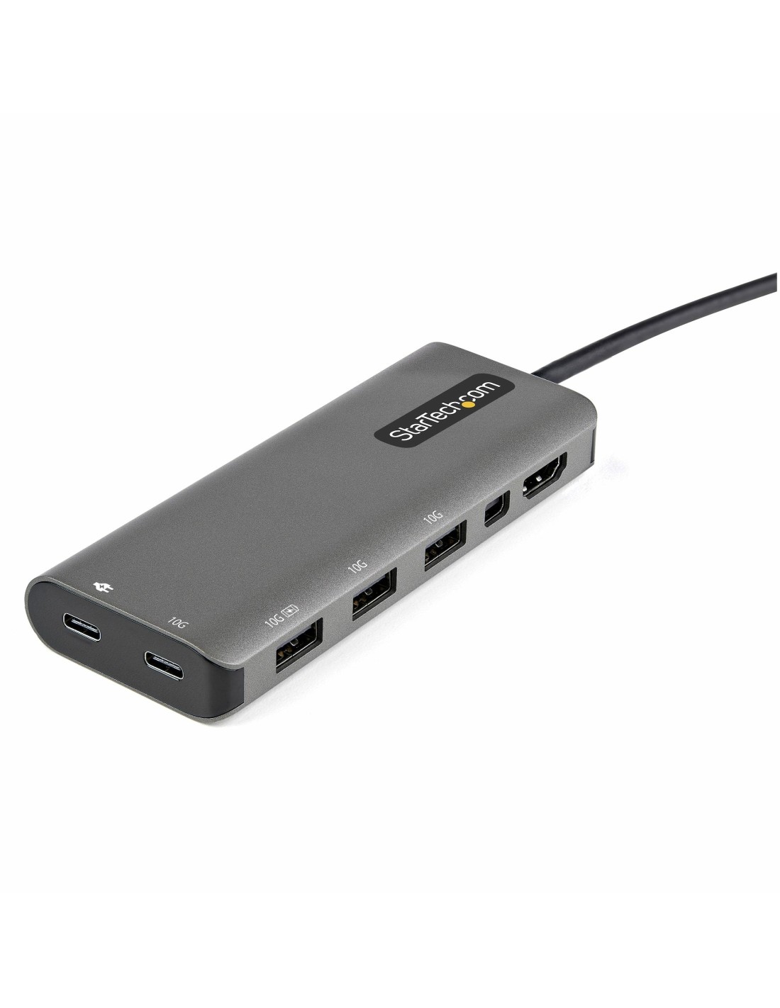 StarTech.com Adaptador Multipuertos USB-C - Docking Station USB Tipo C a HDMI o Mini DisplayPort 4K60 - Replicador de Puertos USBC PD 100W - Hub USB 4 Puertos - Red - con Cable Incorporado de 30cm, Alámbrico, USB 3.2 Gen 1 (3.1 Gen 1) Type-C, 100 W, 2.0b, Negro, Plata, 10 Gbit/s