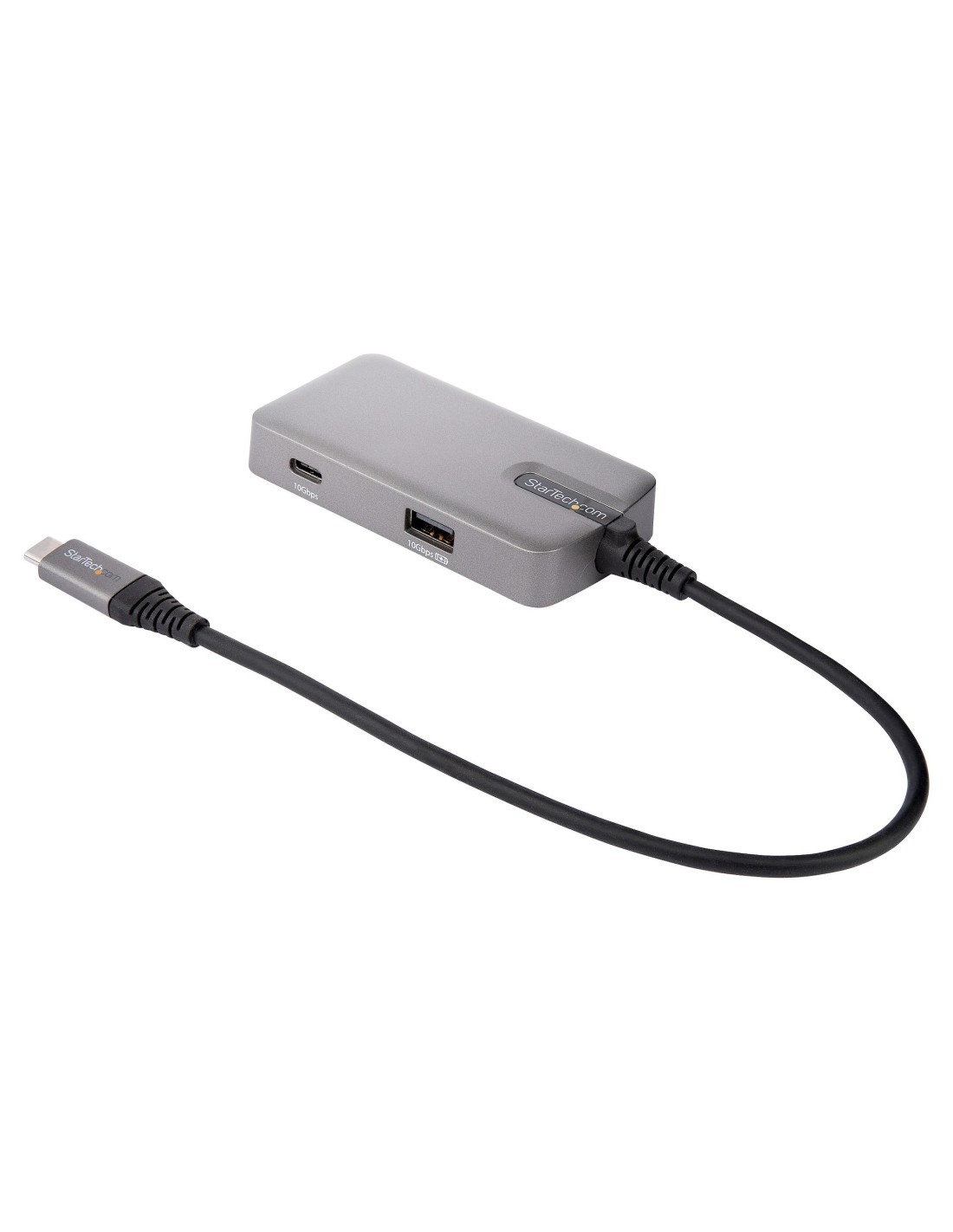 StarTech.com Adaptador Multipuertos USB C - USB-C a HDMI 2.0 4K 60Hz, PD con Paso de 100W - Hub USB de 3 Puertos de 10Gbps - Mini Docking Station USB Tipo C Portátil - Cable de 25cm. Tecnología de conectividad: Alámbrico, Interfaz de host: USB 3.2 Gen 2 (3.1 Gen 2) Type-C, Entrega de energía USB (USB Power Delivery) de hasta: 100 W. Color del producto: Gris, Velocidad de transferencia de datos: 10 Gbit/s, Tipo HD: 4K Ultra HD. Consumo energético: 15 W. Sistema operativo Windows soportado: Windows 10, Windows 10 Education, Windows 10 Education x64, Windows 10 Enterprise, Windows 10..., Sistema operativo MAC soportado: Mac OS X 10.13 High Sierra, Mac OS X 10.14 Mojave, Mac OS X 10.15 Catalina, Mac OS X 11.0 Big Sur,..., Sistemas operativos móviles soportados: Android, iPadOS. Peso: 50 g