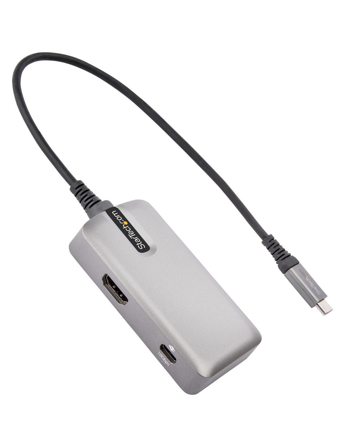 Este adaptador multipuerto USB-C con soporte para HDMI 4K 60Hz® (HDR) convierte su MacBook Pro, Dell XPS u otros portátiles o tabletas USB-C® en una estación de trabajo, allá donde vaya. El adaptador multipuerto USB Type-C proporciona una salida de vídeo HDMI 4K, un puerto USB 3.1 Gen 2 Type-A (10Gbps) (que admite la carga de dispositivos BC 1.2/7.5W), un puerto USB 3.1 Gen 2 Type-C (10Gbps) y un puerto adicional USB 3.1 Gen 2 Type-C que también puede utilizarse como puerto de paso PD 3.0 de 100W, todo ello a través de una sola conexión al puerto USB-C o Thunderbolt 3/4™ de su portátil. Además, ofrece una carga avanzada a través de USB Power Delivery 3.0 y un cable anfitrión conectado extra largo de 25cm para un mayor alcance que ofrece más flexibilidad de configuración.