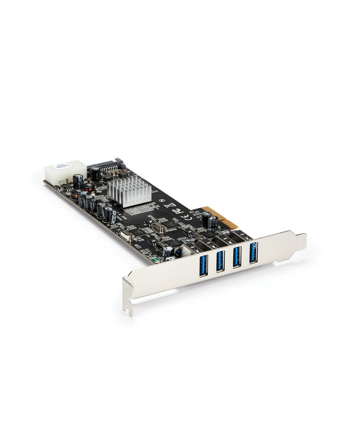 StarTech.com Adaptador Tarjeta PCI Express PCI-E 4 Puertos USB 3.0 UASP 2 Canales de 5Gbps con Alimentación Molex SATA, PCIe, USB 3.2 Gen 1 (3.1 Gen 1), Full-height / Low-profile, PCIe 2.0, Negro, 3 m