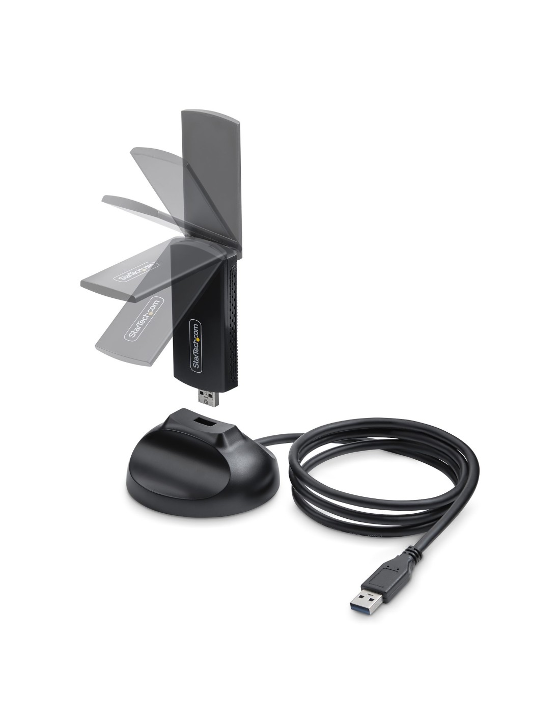 Añada conectividad Wi-Fi 802.11ax a un ordenador a través de USB con soporte tribanda para frecuencias de 2,4/5/6GHzEste adaptador de red USB Wi-Fi 6E se conecta a un ordenador de sobremesa o portátil mejorando sus capacidades y permite una comunicación inalámbrica de alta velocidad y baja latencia en la banda de 6GHz con velocidades combinadas tribanda de hasta 5400 Mbps.Inalámbrico TribandaEl dongle Wi-Fi USB compatible con Wi-Fi 6/6E funciona en esta frecuencia de 6Ghz menos congestionada para reducir las interferencias y mejorar las velocidades de hasta 2402Mbps, ideal para aplicaciones sensibles a la latencia. La compatibilidad con los estándares inalámbricos 802.11 b, g, n y ac tanto en la banda de 5GHz (2400Mbps) como en la de 2,4GHz (574Mbps) garantiza una integración perfecta con las redes existentes, permitiendo transiciones fluidas y la máxima flexibilidad.Base USBLa base USB está imantada y está equipada con un cable integrado de 1,1 m (3,8 pies) que permite una colocación flexible, lo que ayuda a la recepción de la señal y minimiza las interferencias. Además, la base USB está recubierta de goma para mejorar el agarre cuando se coloca sobre superficies planas y no metálicas.La NIC inalámbrica cuenta con una antena plegable que ayuda a mejorar la calidad y el alcance de la señal, ya que permite enfocar las señales inalámbricas directamente al dispositivo. Además, añade comodidad a las configuraciones móviles al mantener un diseño compacto cuando no está en uso.Seguro y FiableWPA3 proporciona un cifrado sólido para la seguridad de las contraseñas Wi-Fi. Las funciones OFDMA y MU-MIMO mejoran el rendimiento de la red reduciendo la latencia y mejorando la eficacia de la transmisión de datos.OFDMA optimiza la transmisión de datos dividiendo los canales en subcanales más pequeños, lo que reduce la latencia y aumenta la eficiencia, especialmente en entornos ocupados. Mientras tanto, MU-MIMO permite la transmisión simultánea de datos a múltiples dispositivos, maximizando el rendimiento y minimizando los tiempos de espera.The StarTech.com Advantage