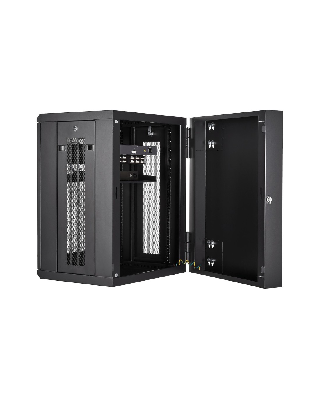 StarTech.com Armario Rack de Pared para Servidores 15U 19" 4 Columnas y Estante 1U - Rack de Servidores de Montaje en Pared con Bisagra - Rack Ventilado para Equipo de Red, Bastidor de pared, 15U, 90 kg, Gestión de cables, 39,6 kg, Negro