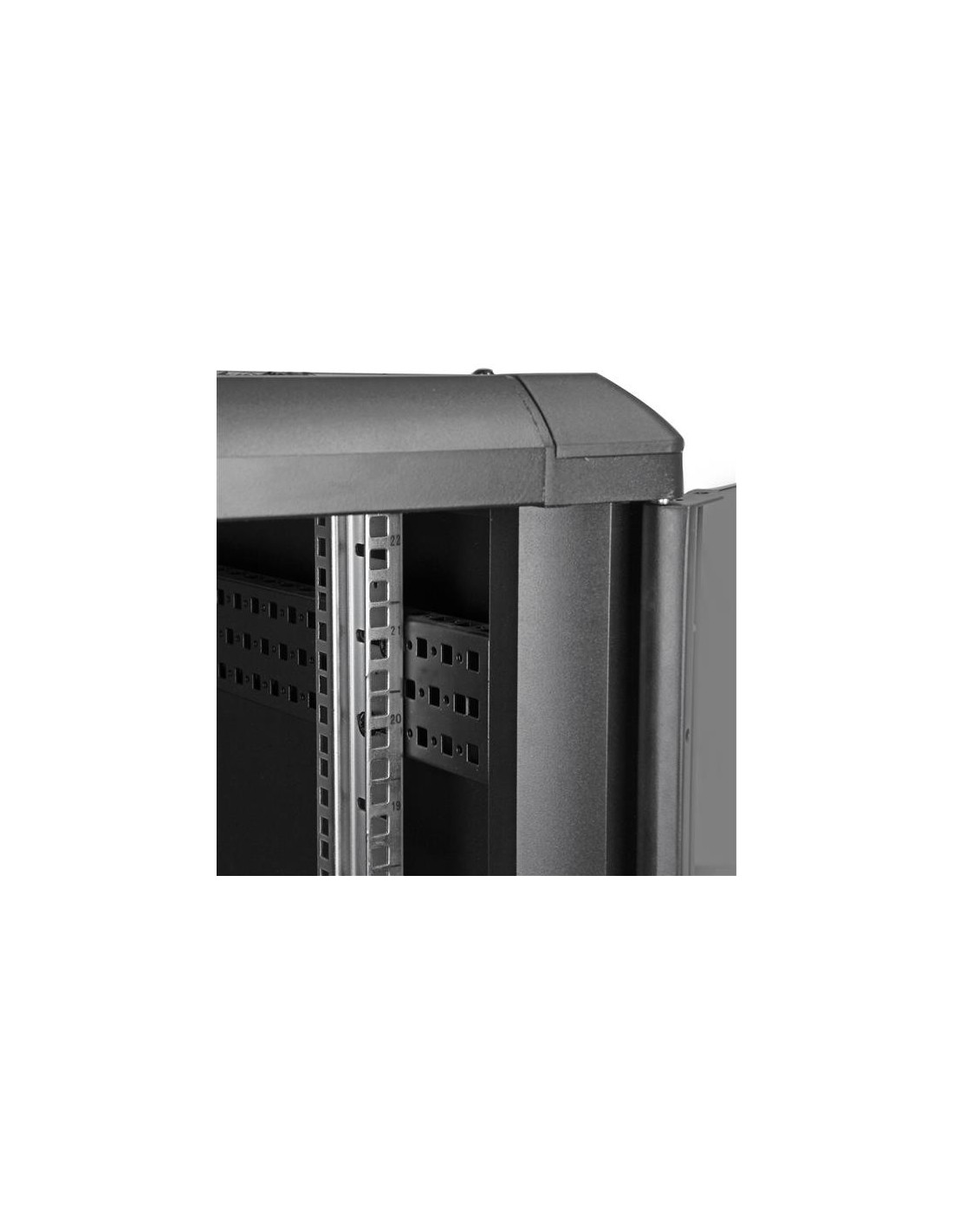 Con los carriles de montaje ajustables puede cambiar fácilmente la profundidad del carril hasta 32,7 pulgadas (830 mm). Estos carriles garantizan que el armario sea ampliamente compatible con sus equipos estándar para montaje en bastidor. La profundidad añadida también proporciona soporte para la gestión adicional de cables y energía detrás de su equipo.