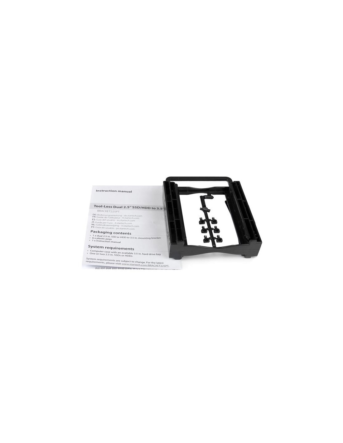 StarTech.com Bracket de Montaje para 2 Unidades de DD/SSD de 2,5" en Bahía de 3,5" - Sin herramientas, 8,89 cm (3.5"), Panel embellecedor frontal, Negro, 2.5", IDE/ATA, SATA, Plástico