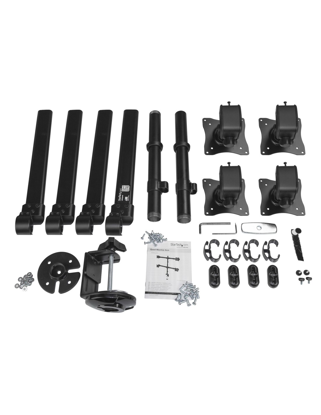 StarTech.com Brazo de Escritorio para 4 Monitores 2x2 de hasta 27" con Montaje VESA- Soporte Ergonómico con Mástil, Articulado y Altura Ajustable - Inclinación/Giro/Rotación - Abrazadera/Ojal. Montaje: Abrazadera, Capacidad máxima de peso: 32 kg, Tamaño mínimo de pantalla: 33 cm (13"), Tamaño máximo de pantalla: 68,6 cm (27"), Compatibilidad con interfaz de montaje (min): 75 x 75 mm, Compatibilidad con interfaz de montaje (max): 100 x 100 mm. Ángulo de giro (alcance): -30 - 30°, Ángulo de inclinación: -30 - 30°. Color del producto: Negro