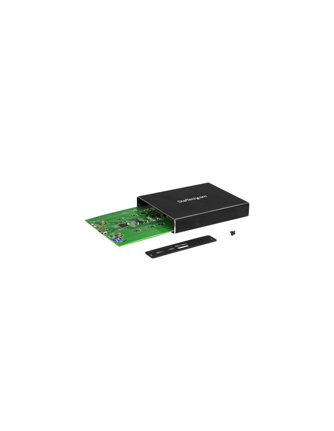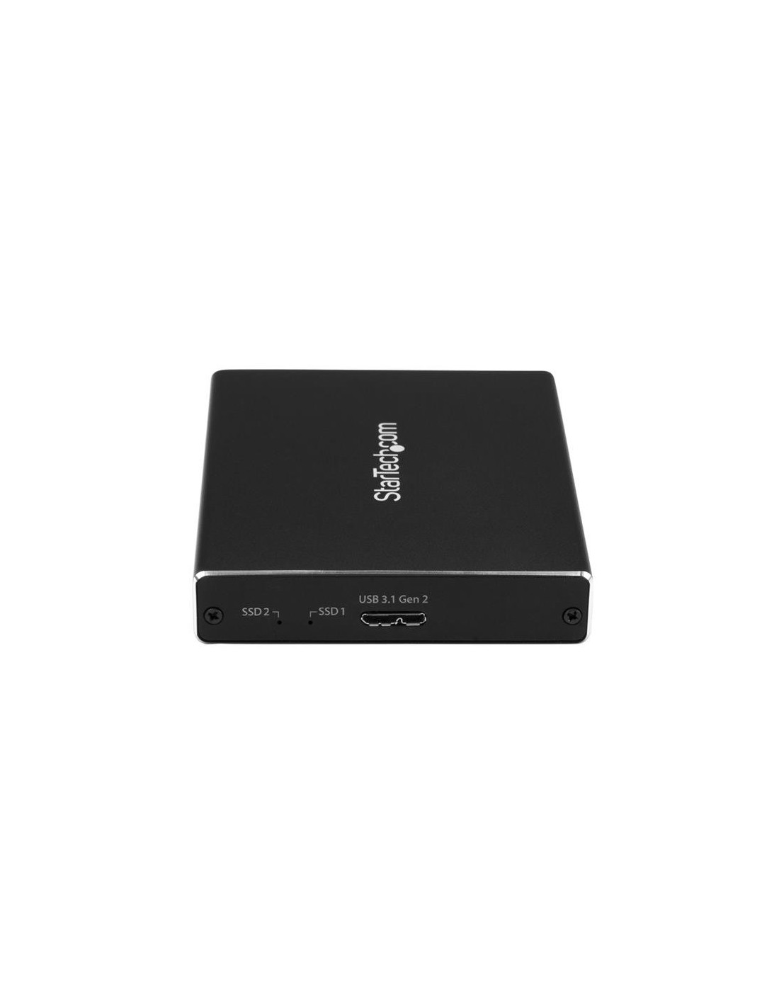 StarTech.com Caja de Dos Bahías M.2 NGFF - USB 3.1 (10Gbps) - RAID - Caja Externa USB-C y USB-A de Aluminio. Tipo de producto: Caja externa para unidad de estado sólido (SSD). Número de unidades de almacenamiento compatibles: 2, Tamaño de la unidad de almacenamiento: M.2, Interfaces de disco de almacenamiento soportados: M.2, SATA, Serial ATA II, Serial ATA III, Capacidad máxima de almacenaje: 2 TB. Velocidad de transferencia de datos: 10 Gbit/s. Niveles RAID: 0, 1, BIG, JBOD. Color del producto: Negro. Conector USB: Micro-USB B