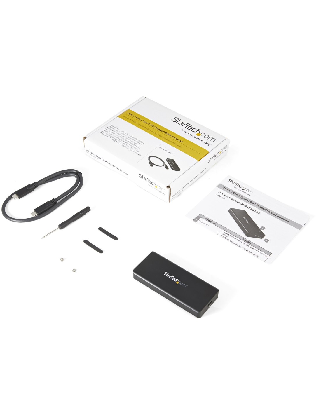 StarTech.com Caja USB 3.1 Gen 2 (10Gbps) para Unidades SSD NVMe M.2 - Resistente al Agua y el Polvo - IP67, Caja externa para unidad de estado sólido (SSD), M.2, PCI Express 3.0, 10 Gbit/s, Conexión USB, Negro