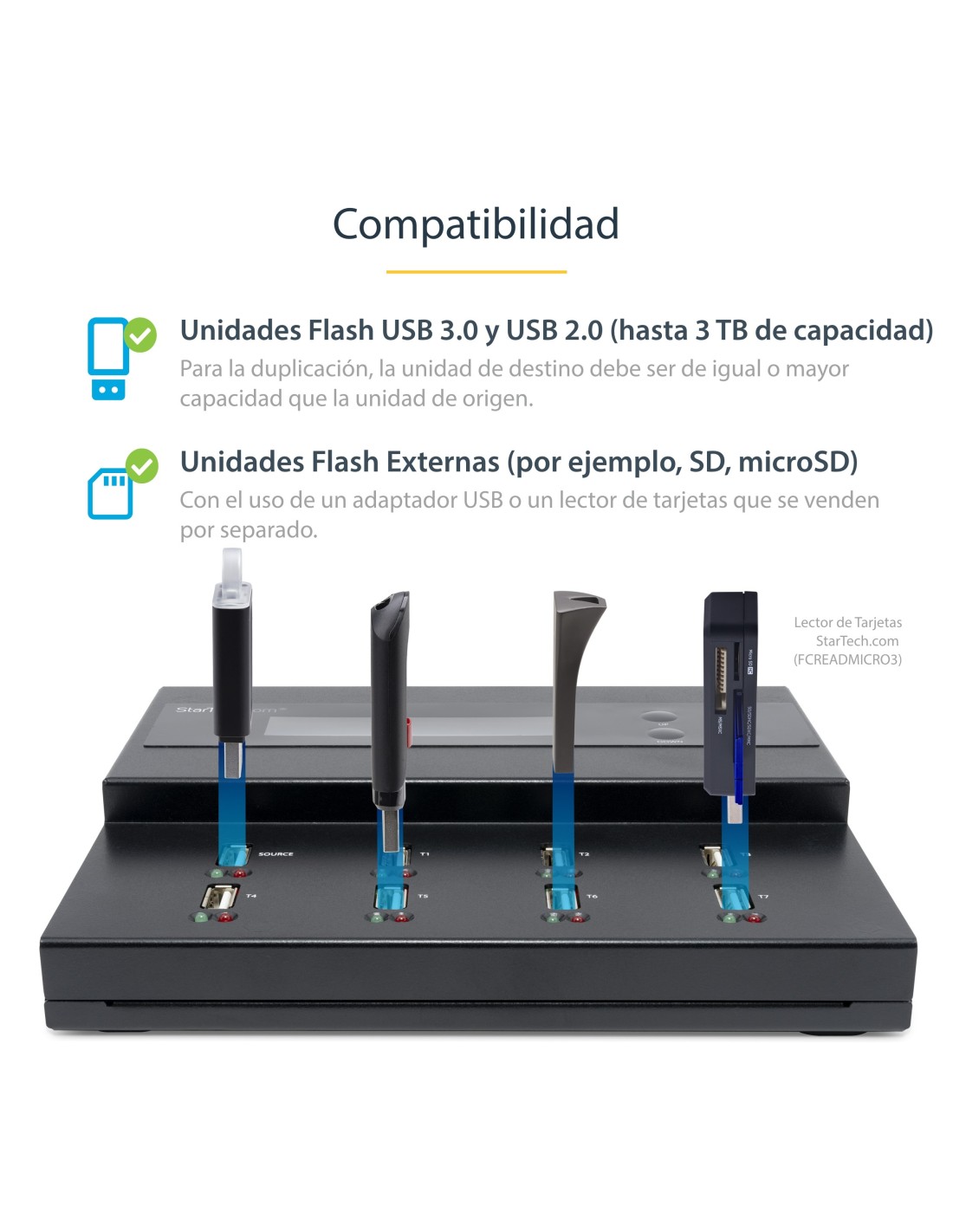 StarTech.com Clonador Autónomo 1:7 para Memorias USB - Copiador de Unidades de Memoria USB - Copia Sector por Sector de Sistema y Ficheros - 1,5 GB/min - Borrado de 3 Pasos - Pantalla LCD, Duplicador de pendrives, 7 copias, USB 2.0, Negro, Acero, USB tipo A