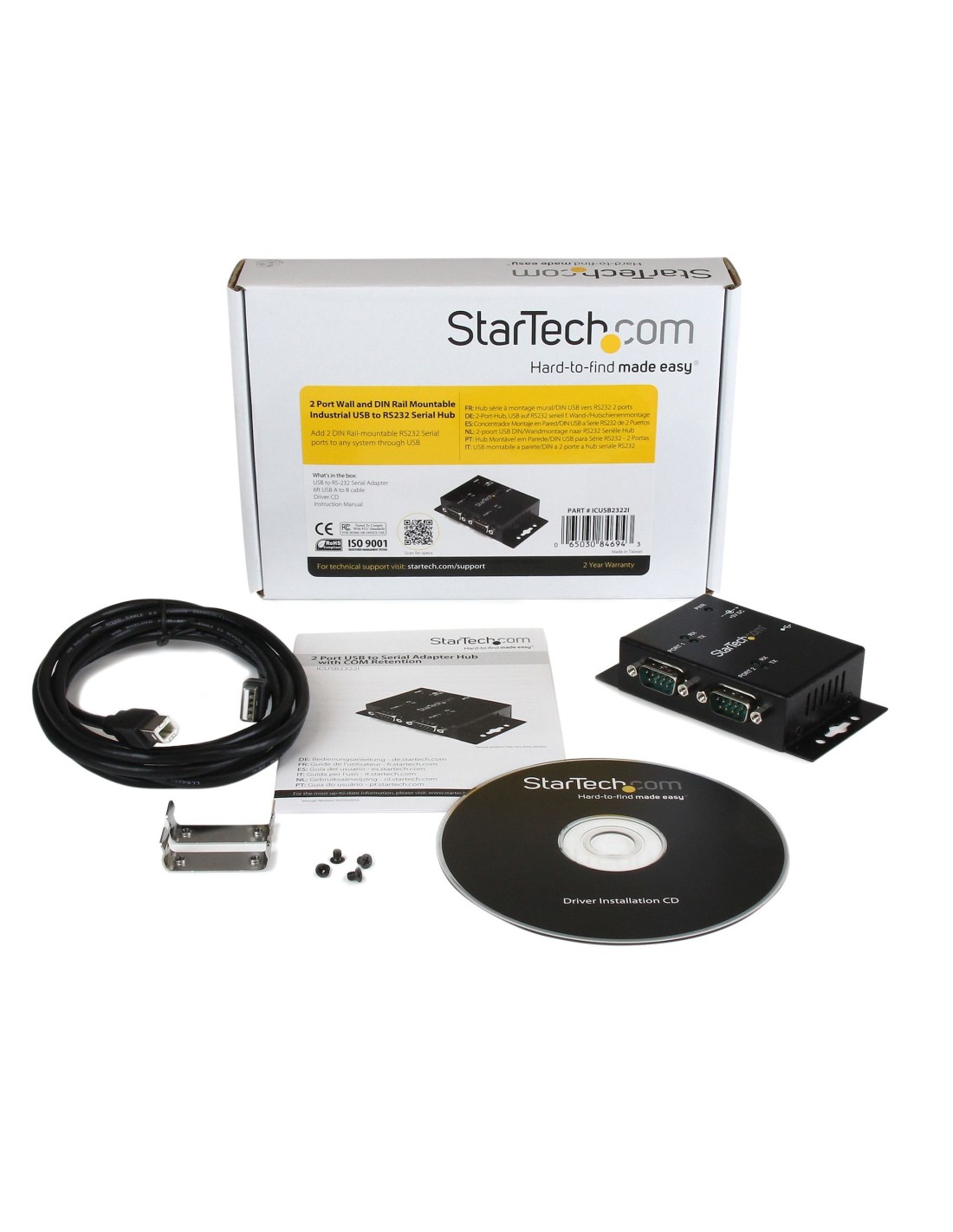 StarTech.com Concentrador Hub Industrial de 2 Puertos Serie Serial RS232 a USB Montaje Riel DIN Pared. Interfaz de host: USB 2.0 Type-B, Interfaces de concentradores: De serie. Color del producto: Negro, Material de la carcasa: Acero, Indicadores LED: Actividad. Sistema operativo Windows soportado: Windows 2000, Windows 2000 Professional, Windows 7, Windows 7 Enterprise, Windows 7 Enterprise..., Sistema operativo MAC soportado: Mac OS X 10.10 Yosemite, Mac OS X 10.11 El Capitan, Mac OS X 10.12 Sierra, Mac OS X 10.13 High..., Otros sistemas operativos soportados: Windows XP Embedded. Ancho: 66 mm, Profundidad: 104 mm, Altura: 24 mm. Cantidad por paquete: 1 pieza(s), Ancho del paquete: 145 mm, Profundidad del paquete: 214 mm