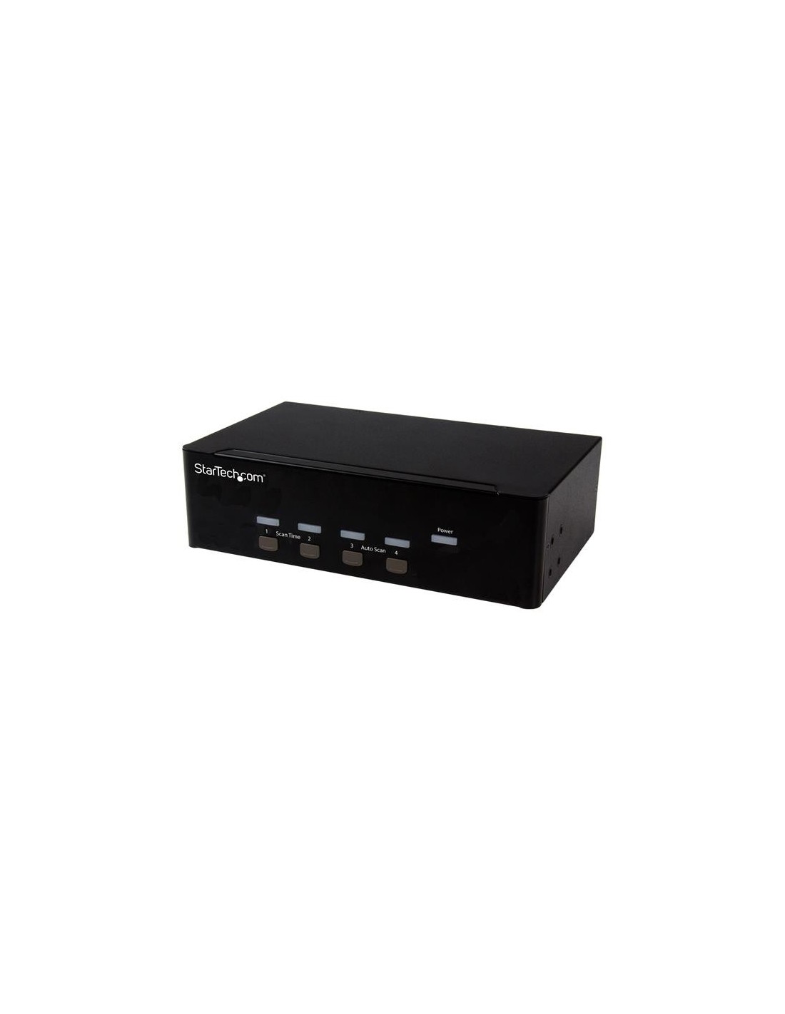 StarTech.com Conmutador KVM de 4 puertos con VGA doble y concentrador USB 2.0 de 2 puertos. Tipo de puerto de teclado: USB, Tipo de puerto de ratón: USB, Tipo de puerto de vídeo: VGA. Máxima resolución: 1920 x 1200 Pixeles, Resolución (máxima analógica): 1920 x 1200 Pixeles, Número de usuarios: 1 usuario(s). Color del producto: Negro, Material de la carcasa: Acero, Certificación: CE, FCC. Voltaje de entrada: 110-240 V, Corriente de entrada: 0.8 A, Voltaje de salida: 12 V. Certificados de conformidad: RoHS